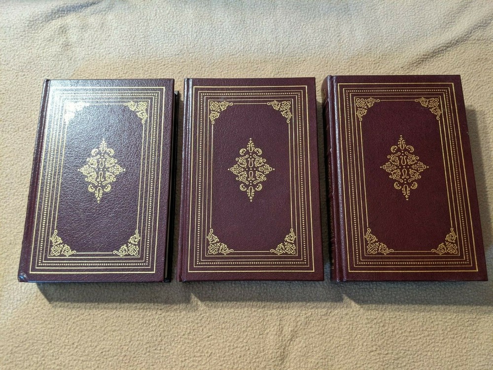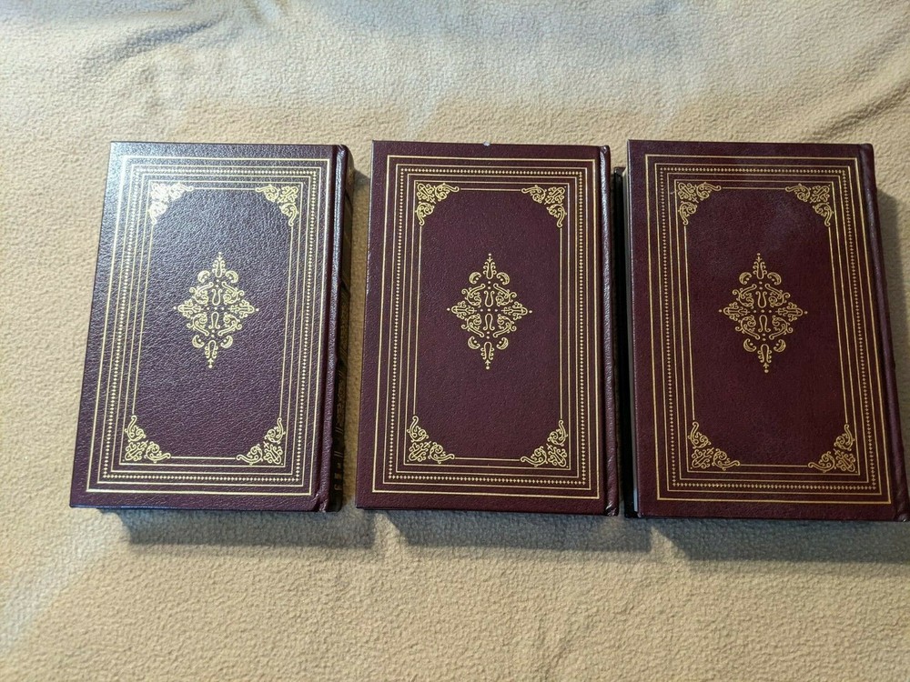 The Harvard Classics 3 Book Lot, 1993 Editions. Included are Plutarch's Lives, Essays and English Traits by Ralph Waldo Emerson, and The Autobiography of Benjamin Franklin, The Journal of John Woolman, and Fruits of Solitude by William Penn. The books have gold page ends, ribbon place markers. All three books are in Very Good to Like New condition, clean and tight. The Franklin, Woolman, Penn book has a small ding to the top rear edge, pictured above. A nice set. Thanks for looking and please check out my other rare and collectible books!
