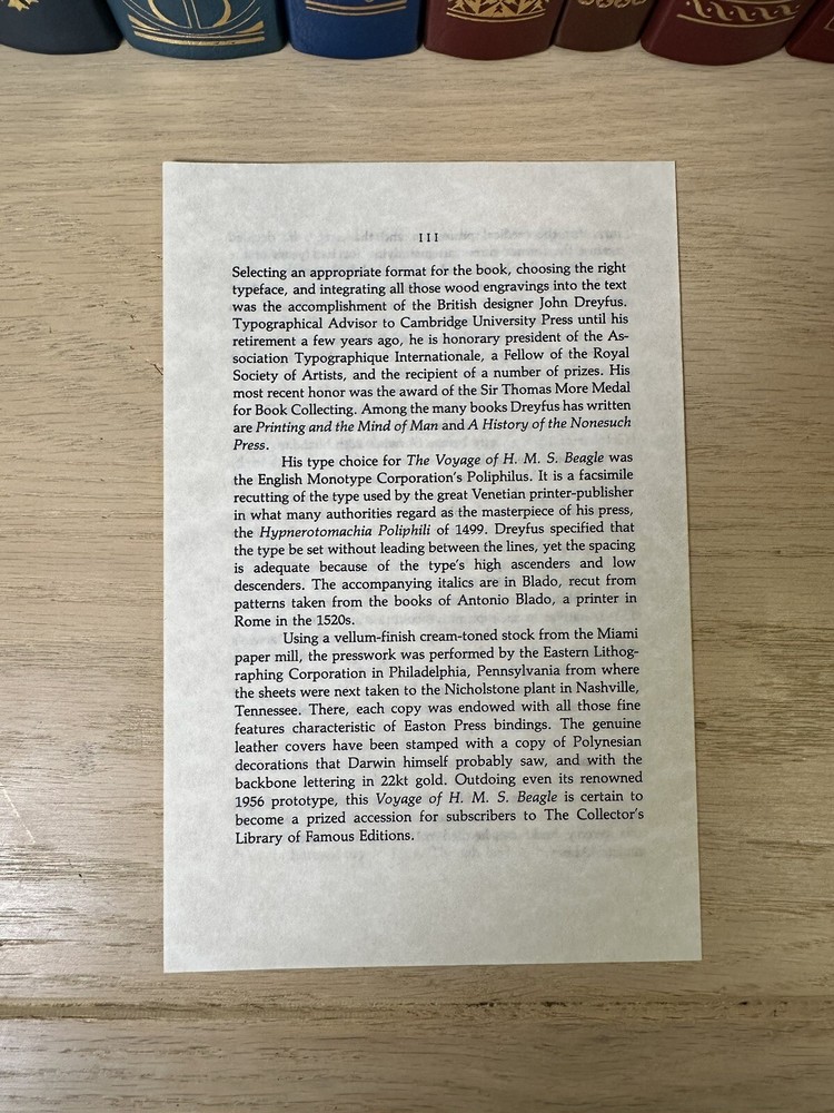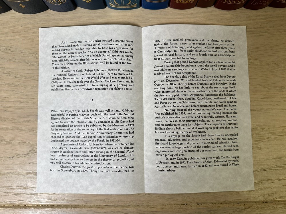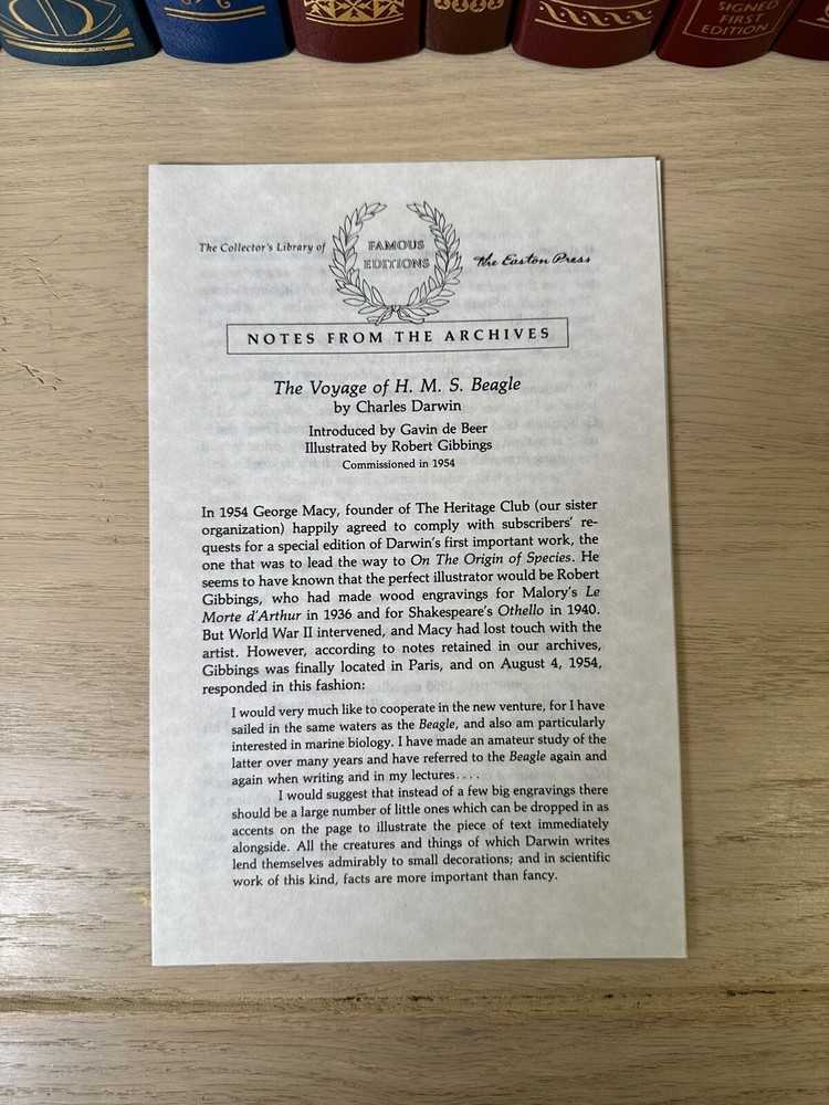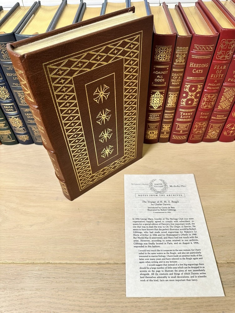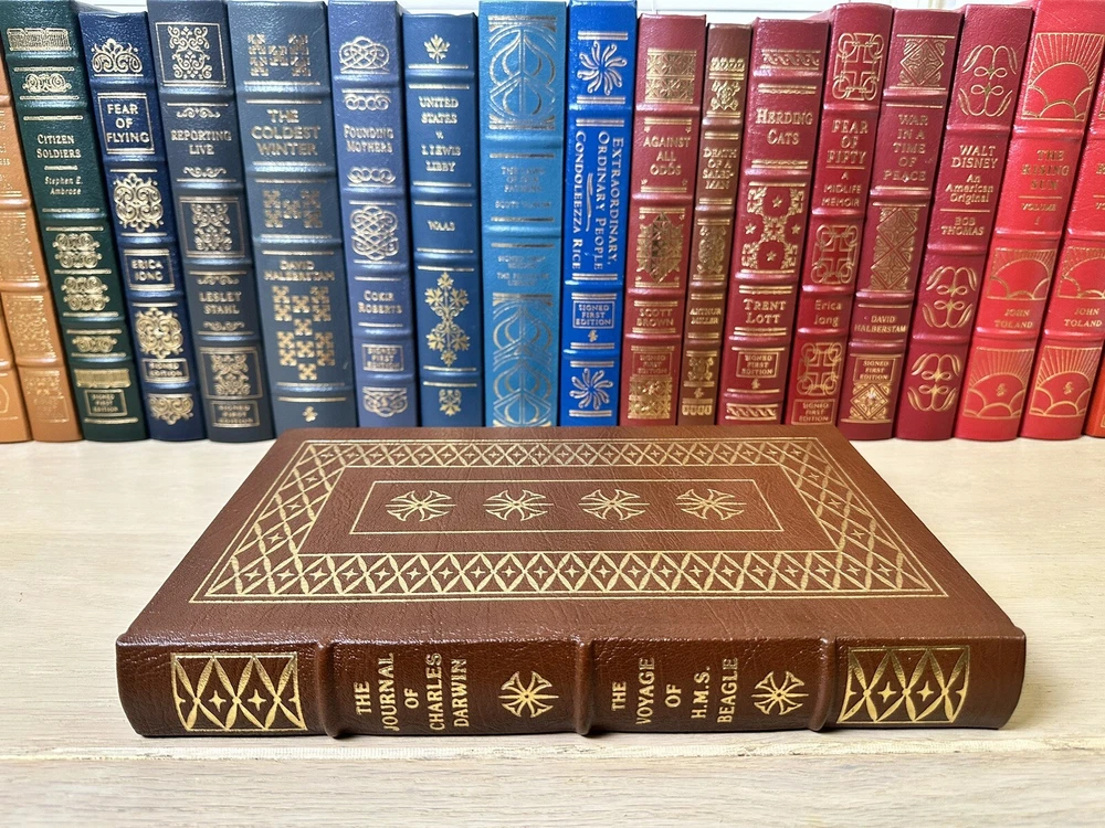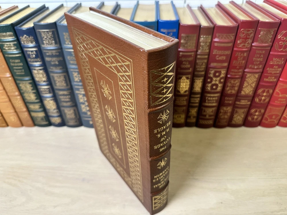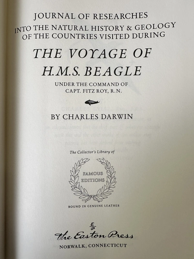 Thank you for checking out my listing! From my father’s personal library, delve into the thrilling narrative of "The Journal of Charles Darwin, the Voyage of HMS Beagle," by Charles Darwin (February 12, 1809 - April 19, 1882) presented by Easton Press. This luxurious leather-bound collector’s edition, was copyrighted in 1957 and printed in 1989, and is a treasure for both collectors and aficionados of exploration literature. The text is complemented by exquisite illustrations from Robert Gibbins, which adds a visual dimension to Darwin's remarkable observations. Easton Press books are known for their high-quality, collectible editions, and this book is no exception. Modified to enhance its value and appeal, it is a one-of-a-kind item. These limited edition books are a great investment and will continue to increase in value for years to come. Easton Press books are also known for the following distinctive qualities: • Premium leather • Silk Moire end leaves • Distinctive cover design • Hubbed spine • 22KT gold accents • Satin ribbon page marker • Gilded page edges • Long-lasting, high quality acid-neutral paper • Smyth-sewn pages for strength and durability Note - This is a 35 year old book that has never been read and is in excellent condition for its age. Expedited shipping available. Please feel free to reach out with any questions! I have hundreds of Franklin Library and Easton Press books for sale. Do not hesitate to ask for a specific title.