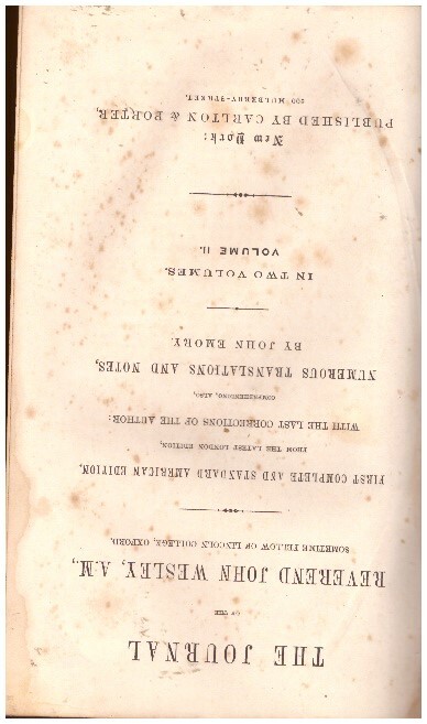Reverend John Wesley Journal Volume 2 A M 1837 Edition