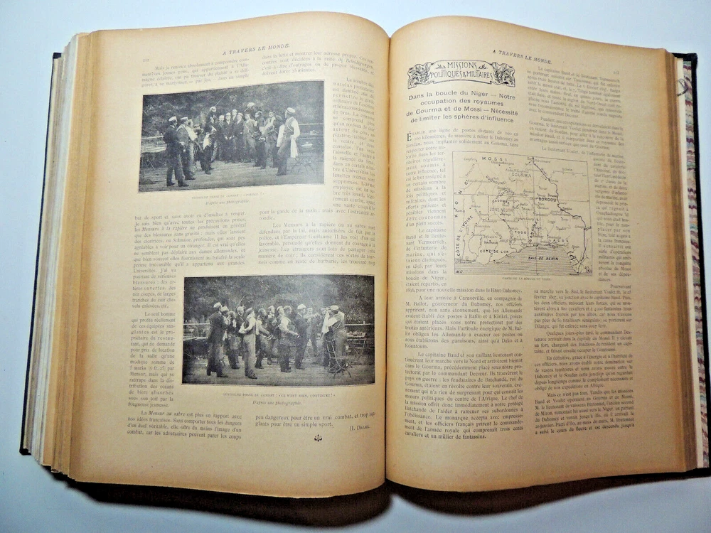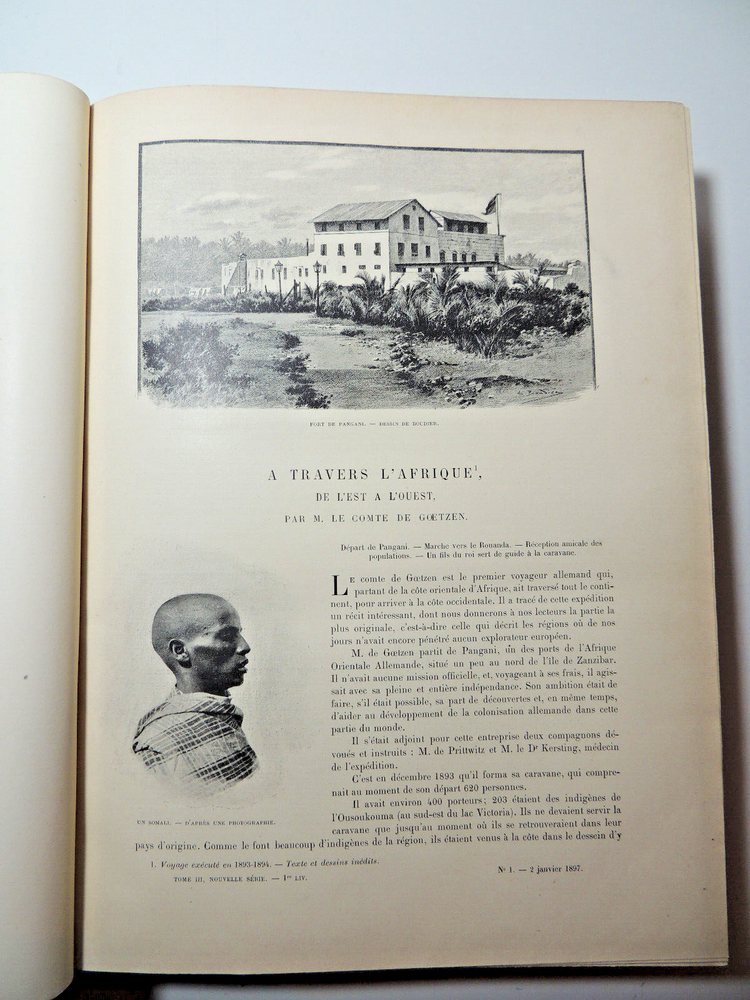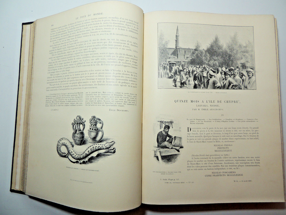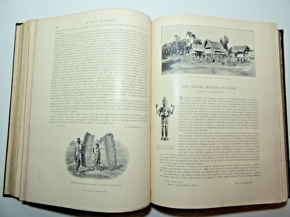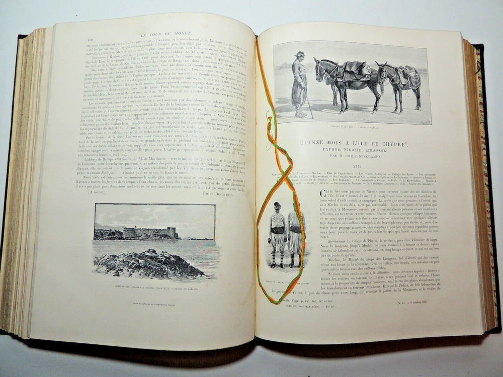 The Tour Of The World. Travel Journal 1897 New Series (Complete) The description of this item has been automatically translated. If you have any questions, please feel free to contact us. Le Tour du Monde, new travel journal edited by Edouard Charton New series. 1897 Table (excerpts): In Germany Journey to the historic towns of Franconia Nuremberg by Eugène Müntz. The dead towns of Siam by L. Fournereau. To the lands of Kerguelen islands of Saint-Paul and Amsterdam by E. Mercié. In Scotland by Marie Anne de Bovet. Fifteen months on the island of Cyprus by Emile Deschamps. In California some races in Sierra Nevada by F. de Longe. In the Land of Don Quixote by Aug.-G. Jaccaci. In the Land of the Buryats by M. Chimkievitch Complete volume 2 semester 1899, 32 x 24 cm. 624pp + Notebooks "around the world, 424pp. beautiful glossy paper, very richly illustrated with more than 500 partially full-page engravings. -- Fresh interior, beautiful copy. 3kg. Paris, Hachette 1897 Le Tour du Monde, new travel journal edited by Edouard Charton New series. 1897 Table (excerpts): In Germany Journey to the historic towns of Franconia Nuremberg by Eugène Müntz. The dead towns of Siam by L. Fournereau. To the lands of Kerguelen islands of Saint-Paul and Amsterdam by E. Mercié. In Scotland by Marie Anne de Bovet. Fifteen months on the island of Cyprus by Emile Deschamps. In California some races in Sierra Nevada by F. de Longe. In the Land of Don Quixote by Aug.-G. Jaccaci. In the Land of the Buryats by M. Chimkievitch Complete volume 2 semester 1899, 32 x 24 cm. 624pp + Notebooks "around the world, 424pp. beautiful glossy paper, very richly illustrated with more than 500 partially full-page engravings. -- Fresh interior, beautiful copy. 3kg. Paris, Hachette 1897 Caractéristiques spéciales Édition de luxe Date de publication 1897 Reliure Cuir Langue Français Époque XIXème Nom Voyage Sujet Voyages et exploration