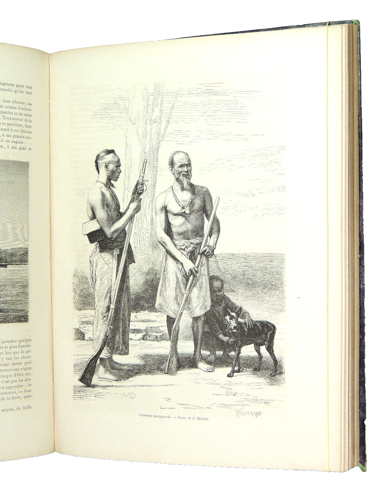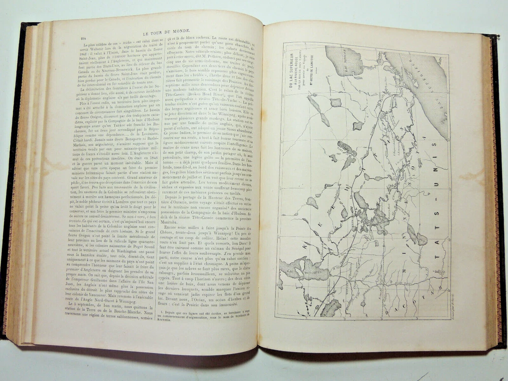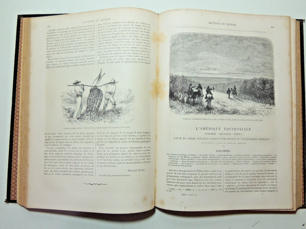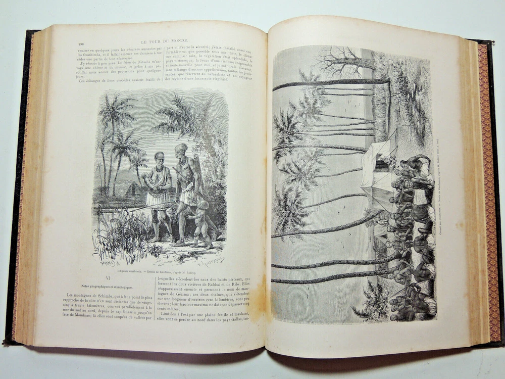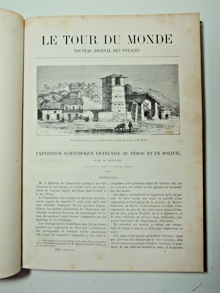 The Tour of the World, New Journal of Travels 1878. The description of this item has been automatically translated. If you have any questions, please feel free to contact us. LE TOUR DU MONDE, New Travel Journal 1878 (1st semester) published under the direction of Mr. Edouard Charton and illustrated by our most famous artists "Eight days of embassy in Hué (Kingdom of Annam), by Brossard de Corbigny, and "Excursion to Canada and the Red River of the North" by de Lamothe, "French scientific expedition to Peru and Bolivia" by Charles Wiener , "Memories of an English Embassy in Kashgar (Central Asia)", "Equinoxial America (Colombia, Ecuador, Peru)", "Journey to the Ouanika, on the Zanguebar coast", "Journey to Greece", Quatre month in Russia. Among the designers: Riou, Kauffmann, Weber, Lancelot, Thérond, Clerget, Sellier. volume in-4, bound 32x25cm, half leather, rubbing, text on 2 columns, some foxing, nice copy, approximately 400pp. Hatchet other volumes on sale, group purchases! LE TOUR DU MONDE, New Travel Journal 1878 (1st semester) published under the direction of Mr. Edouard Charton and illustrated by our most famous artists "Eight days of embassy in Hué (Kingdom of Annam), by Brossard de Corbigny, and "Excursion to Canada and the Red River of the North" by de Lamothe, "French scientific expedition to Peru and Bolivia" by Charles Wiener , "Memories of an English Embassy in Kashgar (Central Asia)", "Equinoxial America (Colombia, Ecuador, Peru)", "Journey to the Ouanika, on the Zanguebar coast", "Journey to Greece", Quatre month in Russia. Among the designers: Riou, Kauffmann, Weber, Lancelot, Thérond, Clerget, Sellier. volume in-4, bound 32x25cm, half leather, rubbing, text on 2 columns, some foxing, nice copy, approximately 400pp. other volumes on sale, group Auteur Edouard Charton Caractéristiques spéciales Illustré Reliure Cuir Langue Français Époque XIXème Sujet Voyages et exploration