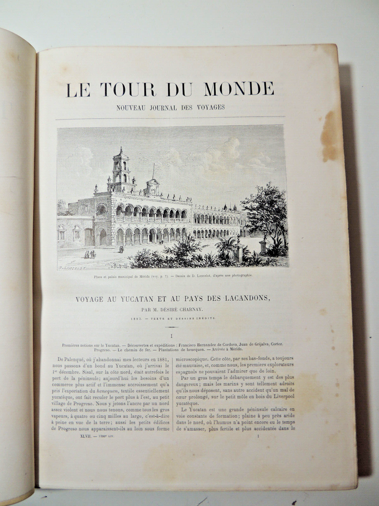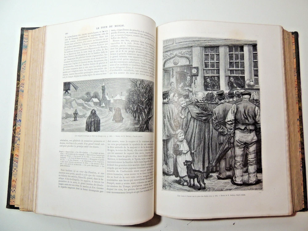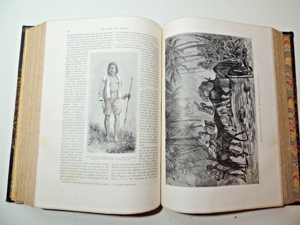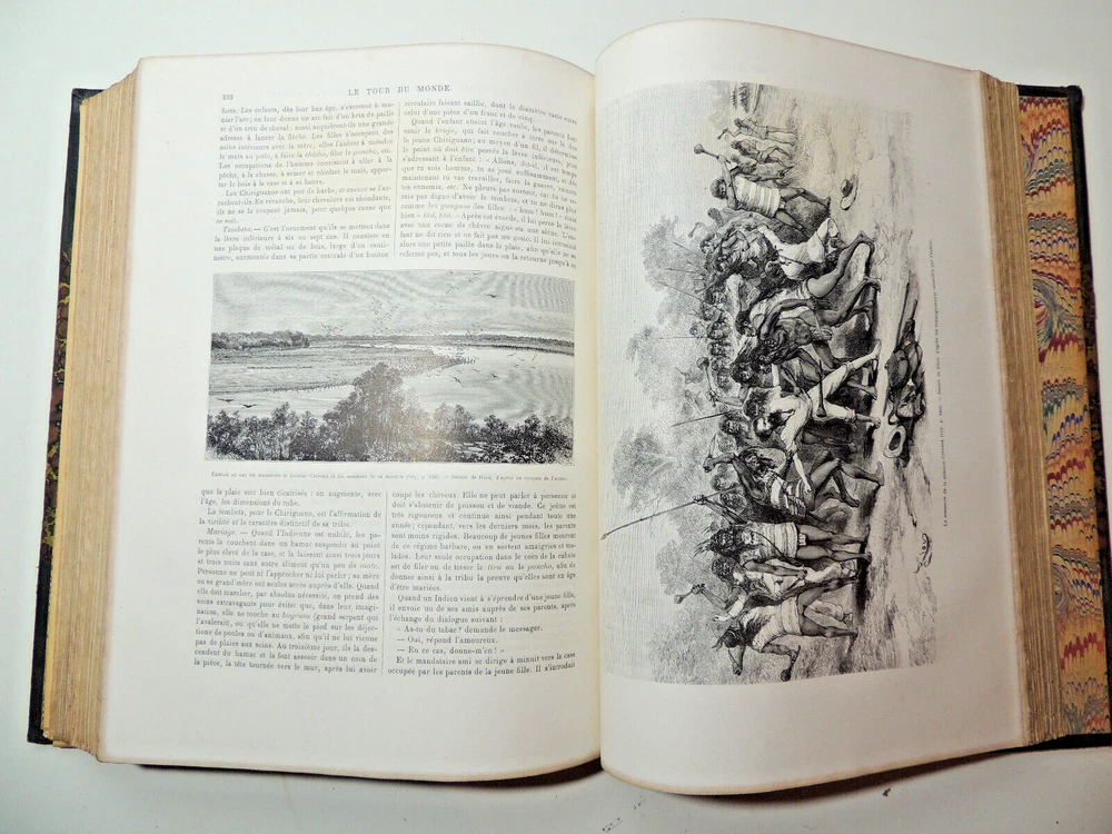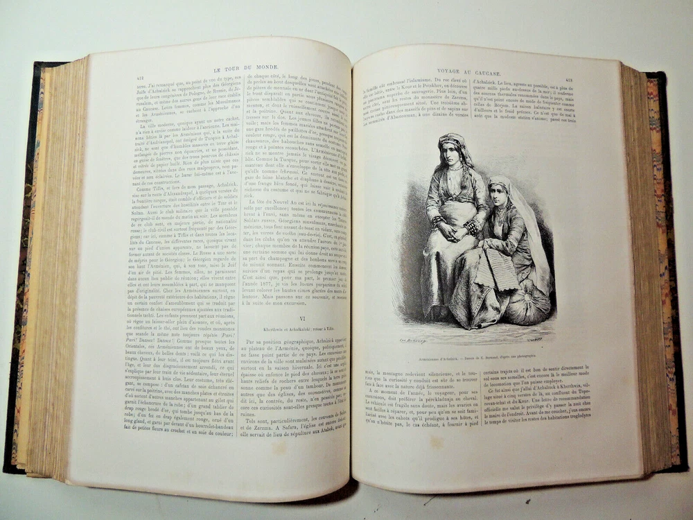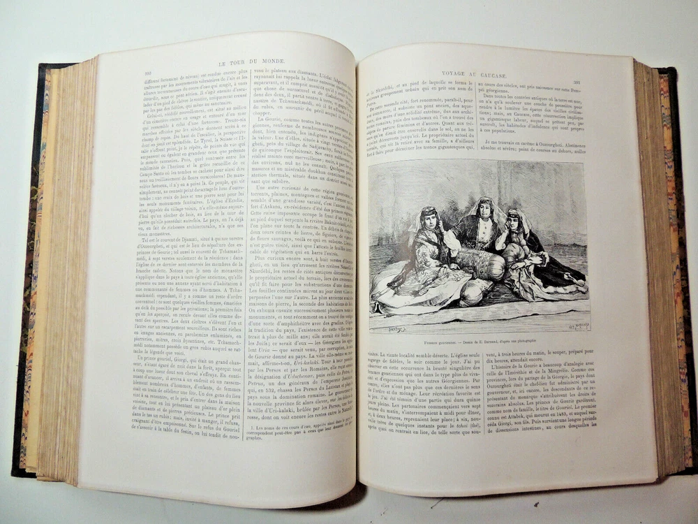 The World Tour. Travel Journal 1884 (complete) The description of this item has been automatically translated. If you have any questions, please feel free to contact us. Le Tour du Monde, new travel journal edited by Edouard Charton New series. 1884 Table (Extracts): A Susa. 1884-1886. Journal of excavations by Mrs. Jane Dieulafoy - Explorations in Lapland: Norway, Sweden, Finland, by Charles Rabot - Voyage à la Plata. Three months of vacation by Emile Daireaux - from Zaïssansk to Thibet and the sources of the Hoang -Ho (Yellow River) Third Voage by M. Prjévalsky in Central Asia 1879-1880 - Through Alsace and Lorraine by Charles Grad - Voyages in Western African by Savorgnan de Brazza - Rouen by Eugène Noël - Voyage en Thessalie by Eugène Monceaux - Travel to Merv by Edgar Boulanger - Travel to Tunisia by R. CAGNAT - My last expedition to the Yucatan by Désiré Charnay - Peru: an excursion to the country of the Campas, by Olivier Ordinary - The lakes of Equatorial Africa by Victor Guiraud - Promenades in Oceania by Aylic Marin Full volume 2 semesters, 32 x 24 cm. Very richly illustrated by more than 500 engravings partially with full page, 436 + 436pp, fresh interior, beautiful copy. 3kg. Paris, Hachette 1884 Table (Extracts): A Susa. 1884-1886. Journal of excavations by Mrs. Jane Dieulafoy - Explorations in Lapland: Norway, Sweden, Finland, by Charles Rabot - Voyage à la Plata. Three months of vacation by Emile Daireaux - from Zaïssansk to Thibet and the sources of the Hoang -Ho (Yellow River) Third Voage by M. Prjévalsky in Central Asia 1879-1880 - Through Alsace and Lorraine by Charles Grad - Voyages in Western African by Savorgnan de Brazza - Rouen by Eugène Noël - Voyage en Thessalie by Eugène Monceaux - Travel to Merv by Edgar Boulanger - Travel to Tunisia by R. CAGNAT - My last expedition to the Yucatan by Désiré Charnay - Peru: an excursion to the country of the Campas, by Olivier Ordinary - The lakes of Equatorial Africa by Victor Guiraud - Promenades in Oceania by Aylic Marin Full vo Recommended products Provided by The World Tour. Travel Journal 1890 (complete) View item The World Tour. Travel Journal 1878 (complete) View item The World Tour. Travel Journal 1866 (complete) View item The World Tour. Travel Journal 1892 (complete) View item The World Tour, New Travel Journal 1887 View item The Tour of the World, New Journal of Travels 1875. View item The Tour of the World, New Journal of Travels 1885 View item The Tour of the World, New Journal of Travels 1878. View item Caractéristiques spéciales Édition de luxe Date de publication 1884 Reliure Cuir Langue Français Époque XIXème Nom Voyage Sujet Voyages et exploration