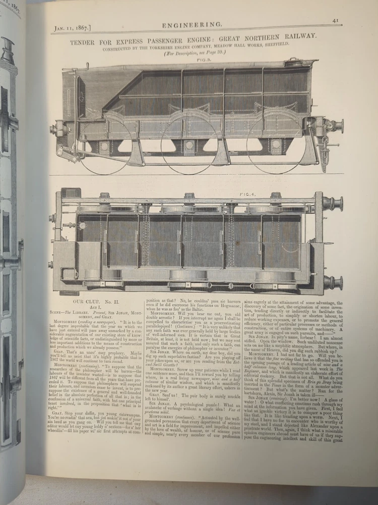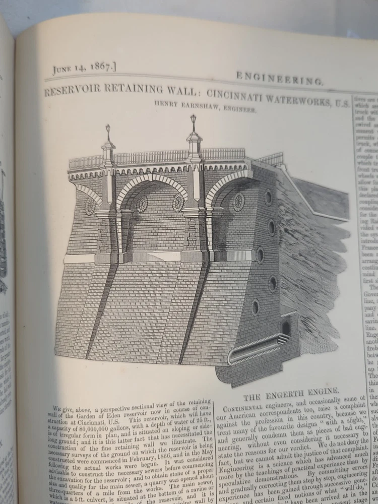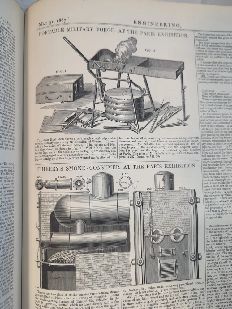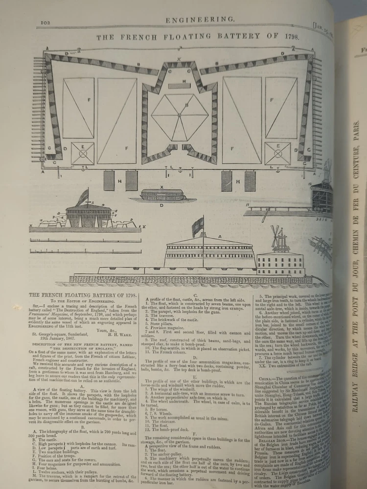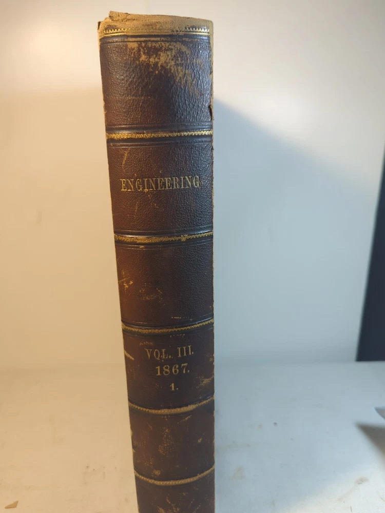 This is a vintage edition of Engineering: An Illustrated Weekly Journal Vol III. 1867 No. 1". The journal is bound in leather and printed in English by the London Office For Advertisements And Publications. It covers topics related to engineering and science & medicine. The journal is an original print from 1867 and is categorized under "Books & Magazines" and "Antiquarian & Collectible". Please see photos. What you see is what you will receive. This volume has been treated with an antimicrobial agent and dried due to the noted microbial growth on the back cover.