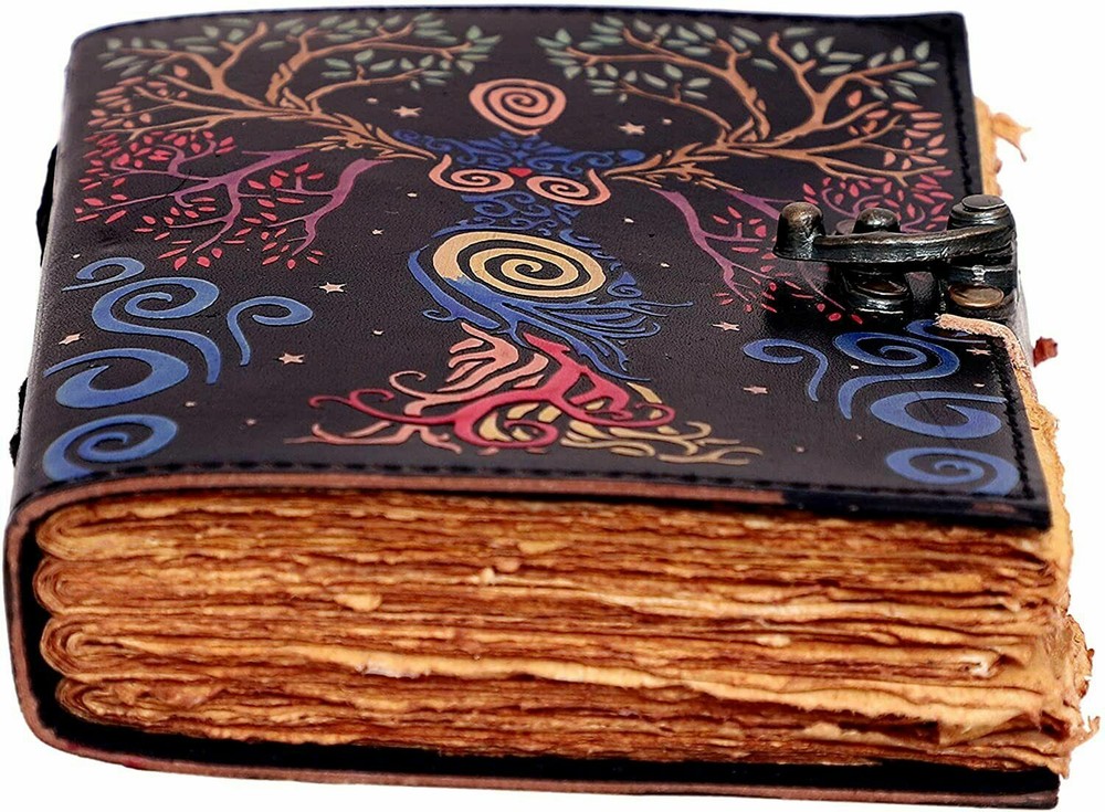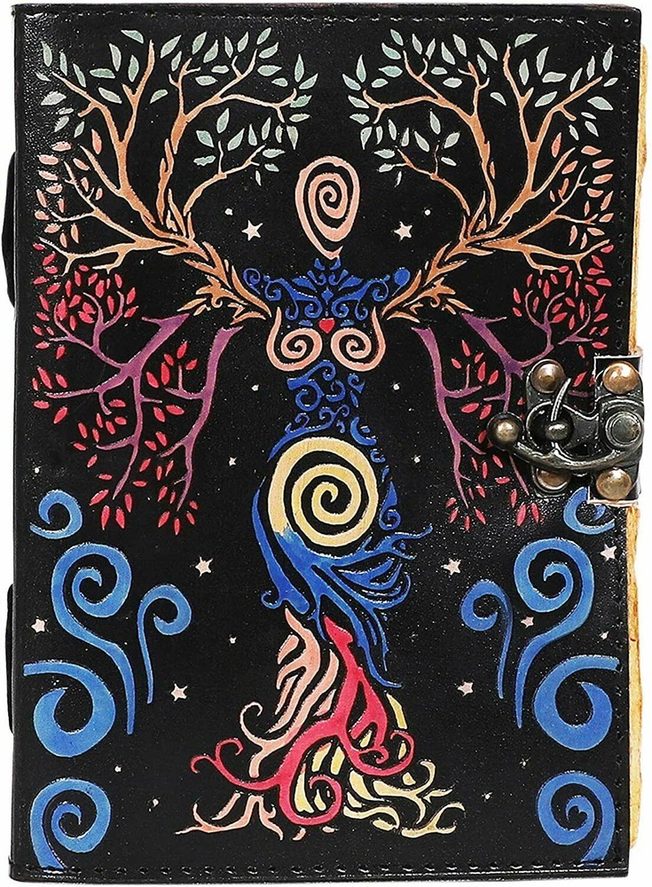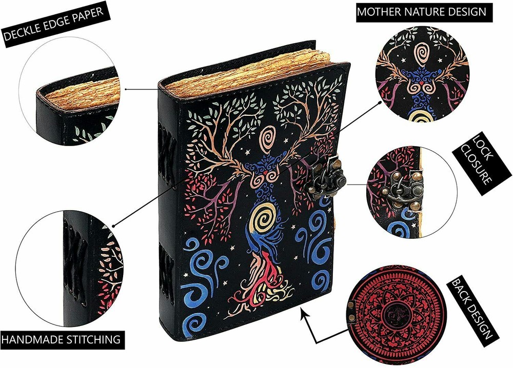 Handmade deckle edge paper mother of earth leather journal writing notebook tree of life antique embossed bound daily notepad unlined paper cover with colorful print journal for women SIZE: 7x5 inch LEATHER VILLAGE PROMISE: - Leather Village Vintage Leather Journal comes with the Trust and promise of Purity of craftsmanship with each Writing Journal. Leather Village prides itself on making products from the highest quality materials with attention to detail. But for any reason if you are not satisfied with the quality of your journal kindly contact us for replacement. UNIQUE GIFTS - Stunning gifts for men on Father’s Day, Graduation or the perfect gift for women on Mother’s Day, Valentine’s Day, Birthday’s or Anniversary. A True Art Treasure, this blank unlined notebook will become a Family Heirloom! Organizer contains recycled deckle edge blank pages 200 which are perfect for mini notes. Handcraft leather diary is an awesome find for book lover or literature present MANY USES - Can be used as a notepad, journal, writing notebook, sketch book. 1.5 inch thickness, easy for handwriting, drawing or sketching and compact for carrying in your bag. Ideal for alternative Artist Sketchbooks, Photo Album, Traveling Notes, Business Executive, Logbook, Poetry Work, Journalists, Food Planner, Instagram Scrapbook and Bible Journaling.