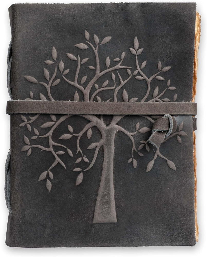 Store New Arrivals Add to Favorite View Feedback Contact Tree of Life Journal - 13 X 8 Inches - Black - 200 Antique Deckle Edge Handmade Paper – Book of Shadows - Vintage Leather Bound Journal for Women & Men Description Item model number LV-Tree-000001 Style Tree of Life Journal Product Dimensions 13 x 8 x 1 inches Number of Items 1 Color Vintage Black Pages 200 Pages Cover Material Leather Material Type Leather Sheet Size A4 Manufacturer Part Number LV-Tree-000001 Item Weight 2.98 pounds Theme Book Ruling Plain Ruling Type Plain Special Feature Soft cover Size 13 inches X 8 inches EXQUISITE & UNIQUE LEATHER COVER - This journal is completely handcrafted by rural artisans using cruelty-free water buffalo leather that is 1.5 millimeters thick. It features precise deep embossing on the cover and durable leather cord binding. This leather journal offers a soft touch exterior with a natural, distressed look that’s truly exclusive. WATERCOLOR PAPER - Tree-free and environmentally friendly Handmade deckled edges virgin paper made from cotton waste which gives you Unique and rustic deckled edges add a touch of elegance to your projects because Each sheet is meticulously crafted by skilled artisans. Each sheet has a thickness of 150 (GSM), which makes it suitable for use with any dry or wet medium and any type of pen or marker, without any blotting. VARIETY OF COLORS & SIZES - Leather Village offers the widest range of leather in various colors, including shades of brown, grey, pink, green, Fuchsia, Turquoise, Black, Tan, Red, Aqua and blue, available in four different sizes: small (6 X 4 inches/A6), medium (8 X 6 inches/A5), large (10 X 7 inches), and extra-large (13 X 8 inches) with 200 Pages. MULTIPLE USE - This leather journal from Leather Village is versatile and can be used for a variety of purposes, such as a sketchbook, pregnancy journal, Bible journal, prayer journal, wedding guest book alternative, and more. You can also use it to attach photos and create a beautiful vintage photo album, record your thoughts, and pass it down to future generations, making it an item with endless possibilities. PROMISE TO OUR BUYERS - Why choose the Leather Village Vintage Leather Journal? Because Leather Village provides genuine 1.5 mm thick water buffalo leather covers that will keep the inner pages safe for centuries. The 150 GSM thick pH-neutral virgin cotton paper will always maintain your artwork's quality for centuries. The lifespan of pure cotton paper is approximately 10 times longer than that of normal paper. Product Description Leather Village Tree of Life Leather Journal Because Life Isn't Simply Black & White Colors are everywhere, and color preferences are deeply personal. Equally important as selecting the Journal, just the right color to make that piece yours. At LEATHER VILLAGE we try to give the largest range of color options which is nowhere available on any other Journal store online. To ensure you can find not only a color you love, but the shade and sheen to create your ideal look. We keep on increasing our varieties. Want a bold green to create an eye-catching travel journal? Or a tan that will accommodate seasonal accessory changes? Look no further than LEATHER VILLAGE offering of luxury leather journals. Natural Beauty, Natural Variations. Our Old- world vintage journals are:- Made from Full-grain water buffalo leather Cruelty free Leather extracted from Dead animals. Naturally Tanned and which are dyed using natural color and oil. Considered the highest quality leather, these hides are also the least touched by human hands – retaining much of their texture and markings that occur naturally during life. Because each hide is unique, it’s possible to find slight variations in color among Notebooks which make them ONE OF A KIND.Excellence, Creative, Craftsmanship The LEATHER VILLAGE Vintage Leather journal offers a beautiful writing experience, is a delight to your senses with its luxurious feel, its' craftsmanship and its' intense leather scent. You will be as proud to own your vintage journal as we have been to make it! For More Color option visit Leather Village Store for Classics 200 GSM Thick True Vintage Paper Book of Shadows Journal Blank Excellence, Creative, Craftsmanship The LEATHER VILLAGE Vintage Leather journal offers a beautiful writing experience, is a delight to your senses with its luxurious feel, its' craftsmanship and its' intense leather scent. You will be as proud to own your vintage journal as we have been to make it! For More Color option visit Leather Village Store for Classics High Quality Antique Leather Journal Artisan crafted leather bound journal notebook, unique art journal. Made with thick genuine water buffalo leather with earthy scent combined with unbeatable Indian craftsmanship and designed with precision.Because each hide is unique, it’s possible to find slight variations in color among Notebooks which make them ONE OF A KIND. The soft and supple dark brown leather has a distressed finish which gets better with time, and will last for years to come. 240 Pages 200 GSM Thick of Handmade Vintage Deckle Edge Paper The Journal has 200 GSM thick antique gREY paper which gives you a feel of writing on a old medieval book . The paper is thick enough to hold all kinds of ink , watercolor, acrylic paints . The deckle edge paper is smooth enough to write with all kind of Pens with no bleed through. It is acid free and pH neutral so whatever you write stays for generations . Buy This to Enjoy !! Sturdy Leather Binding Secure hand binding so no paper comes out loose from your vintage notebook . An ideal gift for artist writers, travelers, graduates, friends, or anyone who has a love for writing and note-taking. A Journal that is worthy of your thoughts and ideas, that will make you feel special every time someone opens it and that will last a lifetime. Timeless Tree of Life Embossed Journal Medieval Era Paper along Wrap around Closure and the beaut