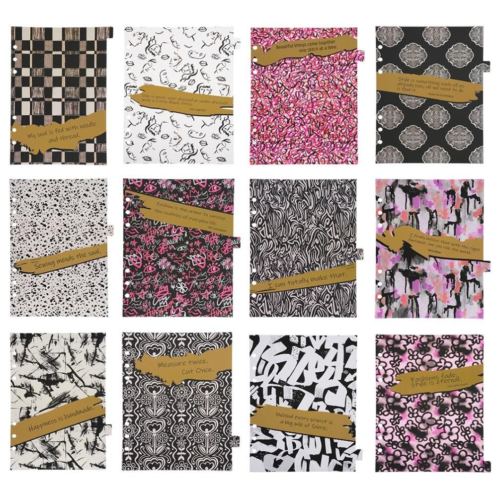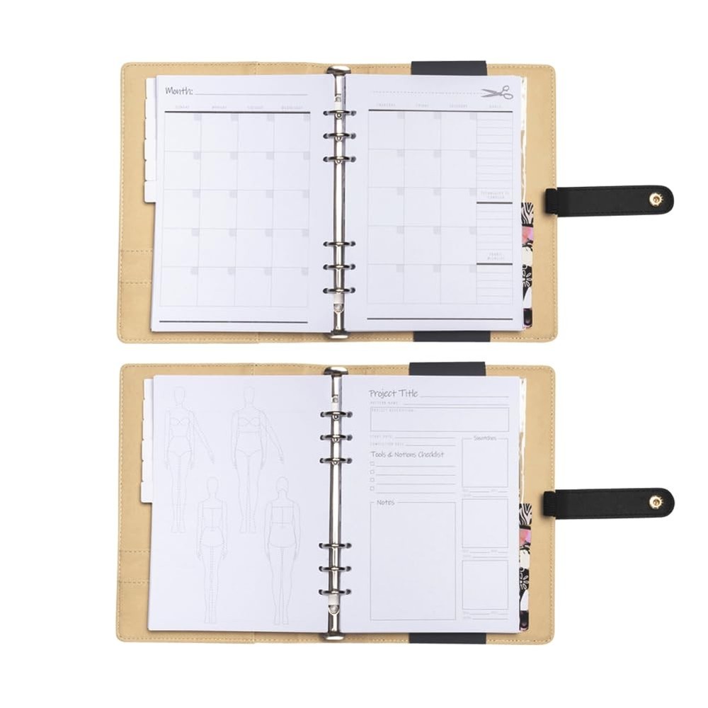 Fashion Designers and Craft Makers, mend your soul together and get ready to project your ideas with style onto our Mood Designer Sewing Planner! Our trendy planner features a gold-foiled logo stamped on a delightfully textured black faux leather cover, slightly padded for comfort of carrying and overall measuring 7 inches by 9.25 inches by approximately 1.25 inches in thickness. It also offers a snap-closure strap to make sure everything stays put when you're on the go! The interior of the cover features a nude-toned book sleeve and 2 pockets on the front cover, plus an elastic pen loop on the right side. Flip on through the inside, which features a 3-ring binder style for easy arrangement, addition, and removal of pages. The A5-sized pages (measuring roughly 5.875 inches by 8.25 inches) offer a wealth of possibilities. It includes 48 weekly project organizers with croquis templates, note segments, checklists in order and capacity for samples within, alongside 12 undated monthly layouts. Additionally, there are more than 20 sheets of sewing determination, sizing directs, and advice in the organizer. It is an absolute necessity for fashion professionals and craft enthusiasts because of its extra features including two sheets of stickers and 12 separators with sewing statements and designs from The Mood Exclusive Rio Collection. 12 undated monthly spreads If you need more space or are ready to flip your planner to a new year, we’ve got you covered: check out these Project Page Refills and Monthly Calendar Refills.