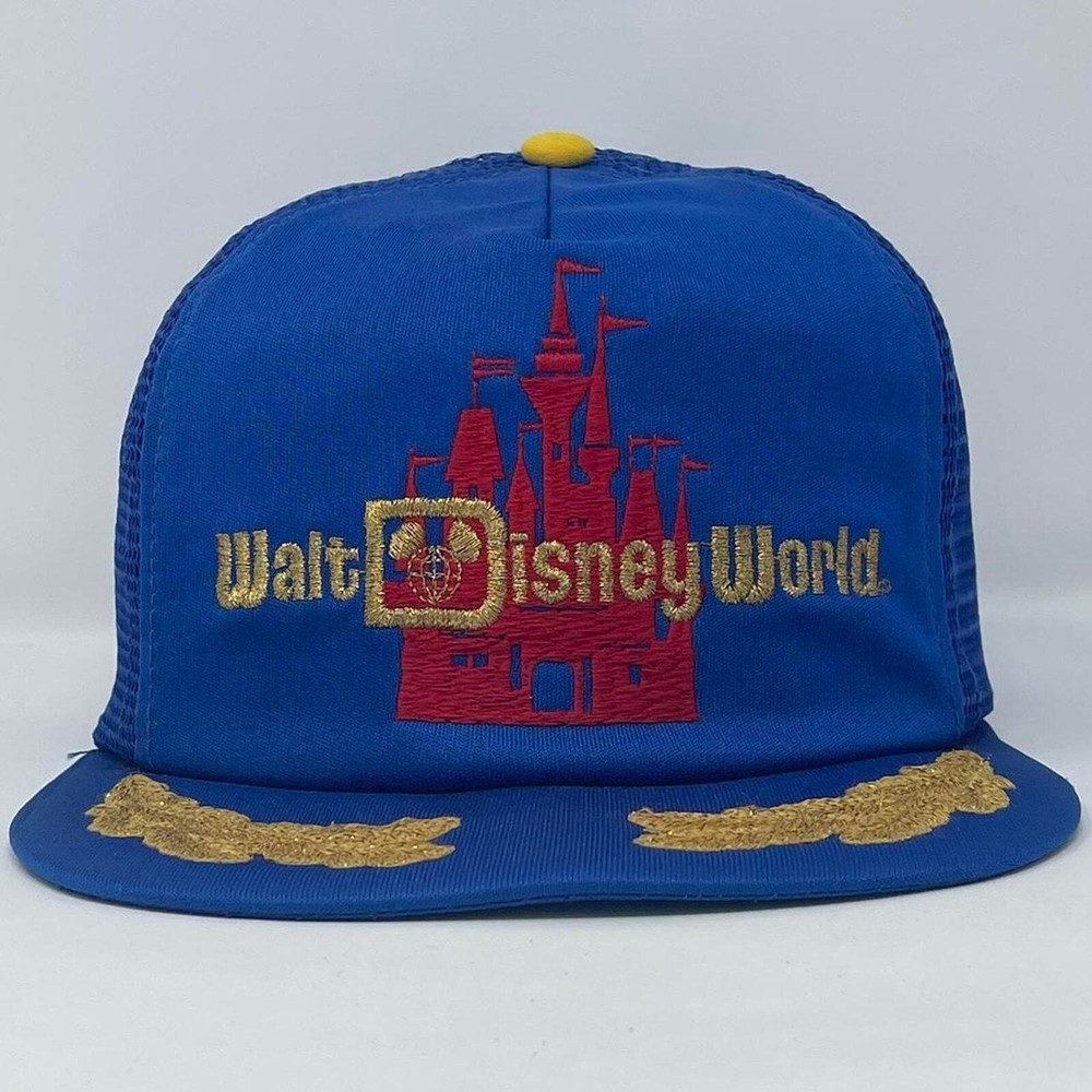 <![CDATA[<div>True Vintage Walt Disney World Trucker Hat 70s/80s snap back made in Walt Disney World trucker hat with golden brim "scrambled egg" captains embroidery. Old school thin front material, n...