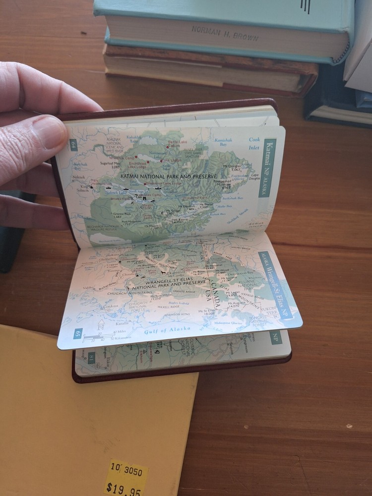 Explore the stunning beauty of America's natural wonders with the "U. S. National Parks Travel Guide & Journal" by Graphic Image, Inc. This comprehensive guide, published in 1999, offers a rich narrative on the country's treasured parks, catering to an adult audience with a penchant for travel and natural landscapes. The guide comes in a durable leather cover format, ensuring it can withstand the rigors of extensive use. From the vivid illustrations to the detailed information on each park, this book serves as an invaluable companion for both armchair travelers and those embarking on the road to adventure. Cover feels like leather, though may not be. In like new condition. I have other travel & National Park items available.