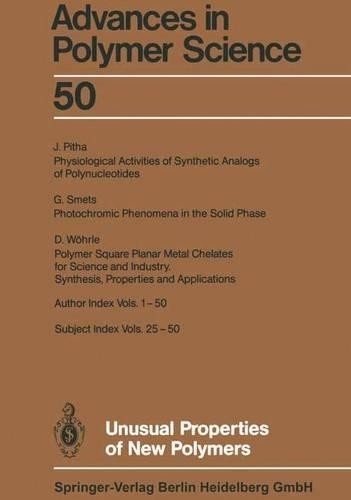 Unusual Properties of New Polymers Please note: this item is printed on demand and will take extra time before it can be dispatched to you (up to 20 working days). Author(s): Akihiro Abe, Ann-Christine Albertsson, Karel Dusek, Jan Genzer, Shiro Kobayashi, Kwang-Sup Lee, Ludwik Leibler, Timothy E. Long, Ian Manners, Martin Mller Format: Paperback Publisher: Springer-Verlag Berlin and Heidelberg GmbH & Co. KG, Germany Imprint: Springer-Verlag Berlin and Heidelberg GmbH & Co. K ISBN-13: 9783662153208, 978-3662153208 Synopsis With contributions by numerous experts