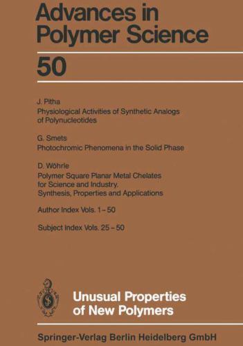 The Nile on eBay Unusual Properties of New Polymers by Akihiro Abe, Ann-Christine Albertsson, Karel Dusek, Jan Genzer, Shiro Kobayashi, Kwang-Sup Lee, Ludwik Leibler, Timothy E. Long, Ian Manners, Martin Möller With contributions by numerous experts FORMAT Paperback LANGUAGE English CONDITION Brand New Table of Contents Physiological activities of synthetic analogs of polynucleotides.- Photochromic phenomena in the solid phase.- Polymer square planar metal chelates for science and industry. Promotional Springer Book Archives Details ISBN 3662153203 Short Title UNUSUAL PROPERTIES OF NEW POLY Pages 152 Series Advances in Polymer Science Language English ISBN-10 3662153203 ISBN-13 9783662153208 Media Book Format Paperback Series Number 50 Year 2013 Imprint Springer-Verlag Berlin and Heidelberg GmbH & Co. K Place of Publication Berlin Country of Publication Germany Author Martin Möller Birth 1969 Affiliation University of Toronto, Dept. of Chemistry, Toronto, Canada Roskilde University, Denmark Roskilde University, Denmark University of Toronto, Dept. of Chemistry, Toronto, Canada University of Toronto, Dept. of Chemistry, Toronto, Canada Illustrations 3 Illustrations, color; V, 152 p. 3 illus. in color. DOI 10.1007/BFb0025246 Publication Date 2013-10-03 Publisher Springer-Verlag Berlin and Heidelberg GmbH & Co. KG Edition Description Softcover reprint of the original 1st ed. 1983 Alternative 9783540120483 DEWEY 541.2254 Audience Professional & Vocational We've got this At The Nile, if you're looking for it, we've got it. With fast shipping, low prices, friendly service and well over a million items - you're bound to find what you want, at a price you'll love! TheNile_Item_ID:96354216;