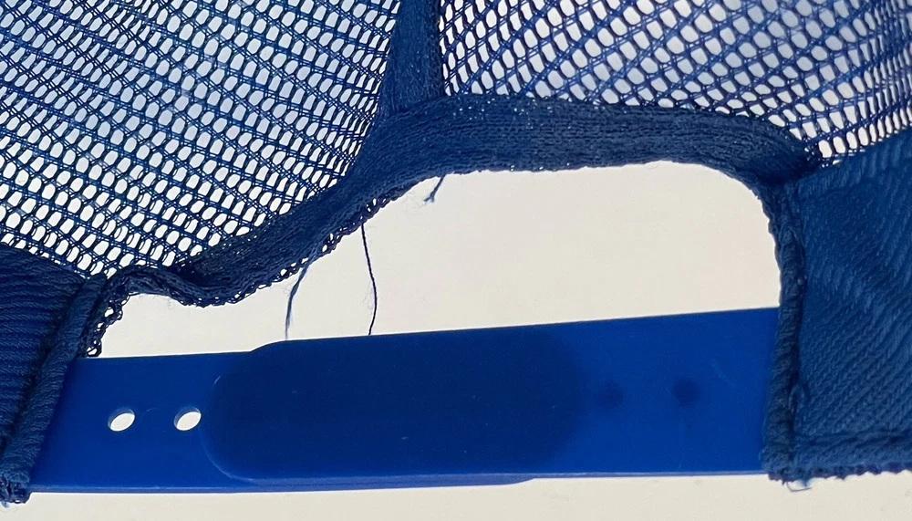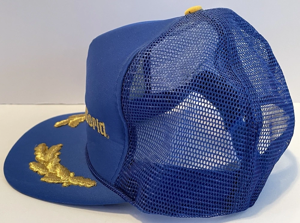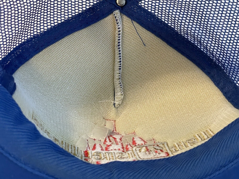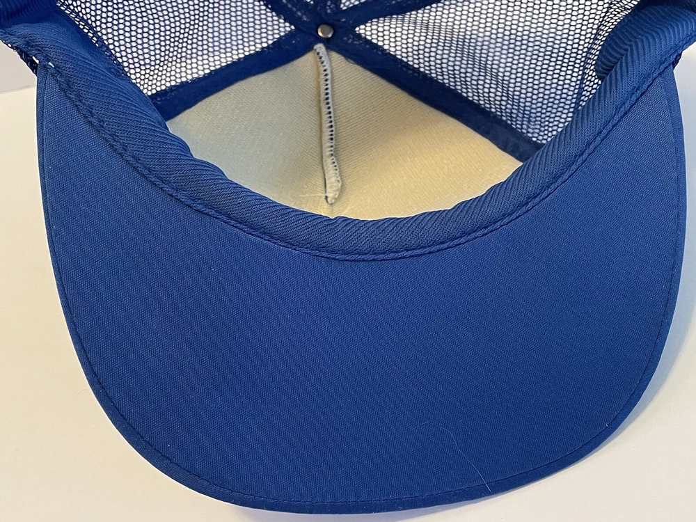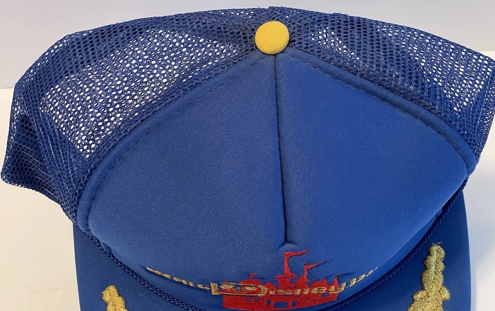 This vintage Walt Disney World hat is a true gem for any Disney fan. The blue trucker mesh cap features the iconic Disney World logo on the front and a snap back for a comfortable fit. Made in Taiwan, this hat is suitable for both men and women and is a must-have accessory for any Disneyana collector. The hat is from the 80s and is perfect for adults who want to add a touch of nostalgia to their wardrobe. Get your hands on this rare piece of Disney history today! Some small staining on the bottom front of the hat