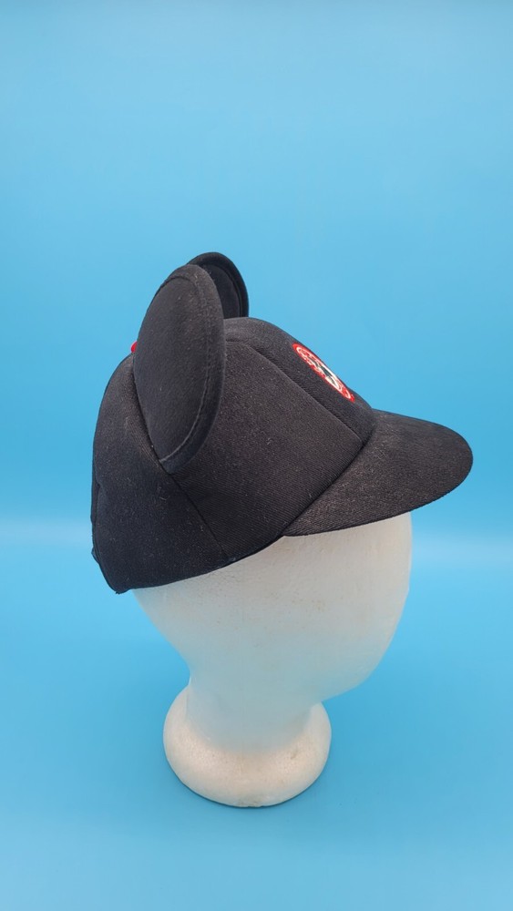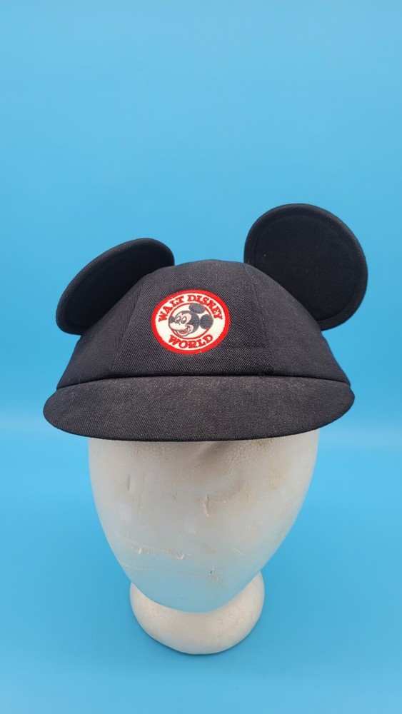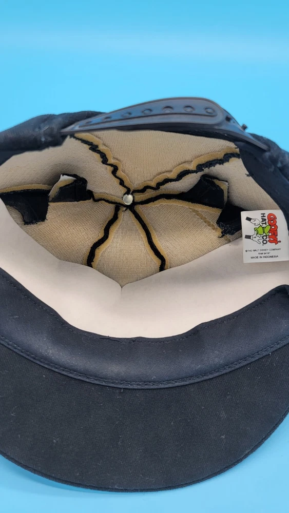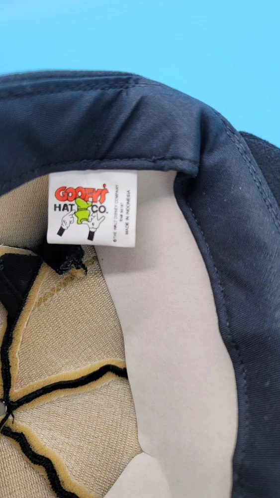 Vintage Walt Disney World Mickey Mouse snapback hat from Goofy's Hat Co. The adjustable, black hat features the Mickey Mouse Walt Disney World logo, and is perfect for Disney fans of all ages. Made in Indonesia, the tag says adult, and the hat is adjustable with the strap in the back. Hat has never been worn, it still has original cardboard protector inside the hat. Foam inside the hat is in excellent condition. Hat does have some fuzzies from being in storage, but there's no fading or other flaws.