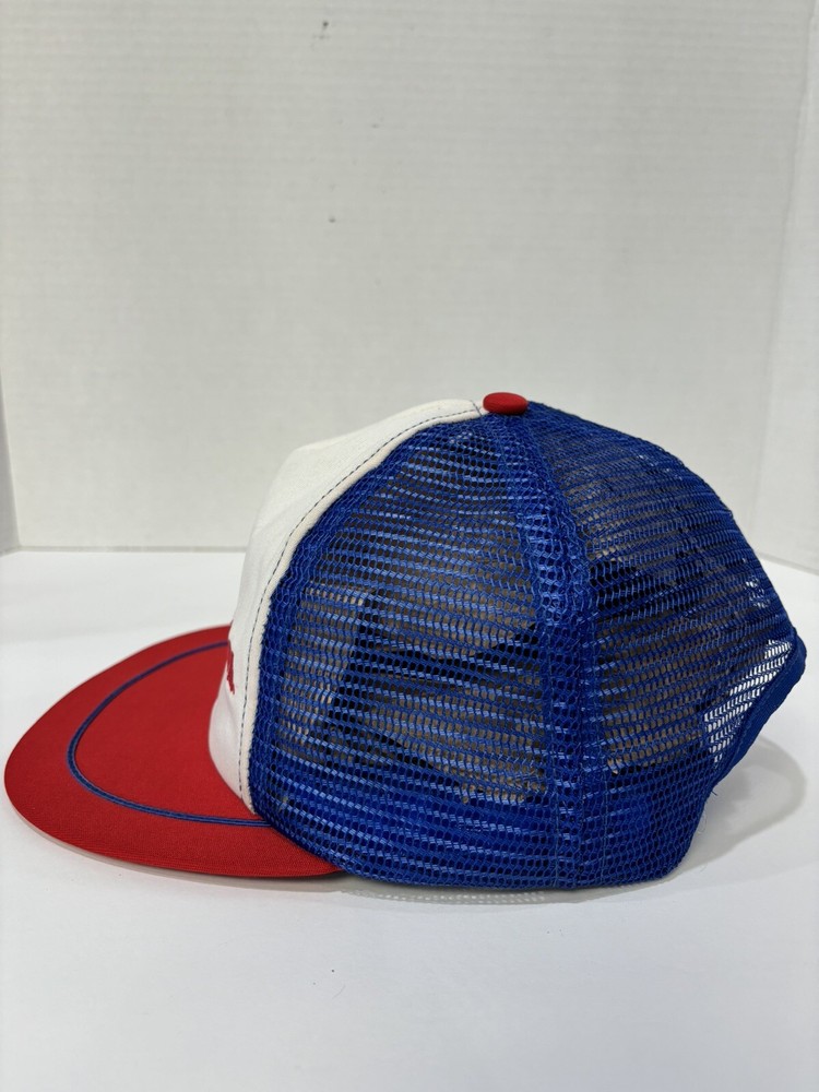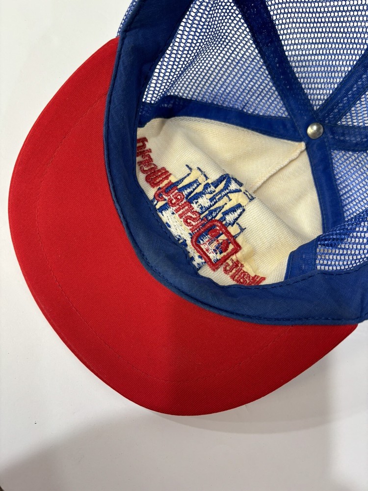 This a used vintage red, white, and blue 1980s Walt Disney World Magic Kingdom Snapback Trucker Hat. Please see pictures and ask any questions you have....
