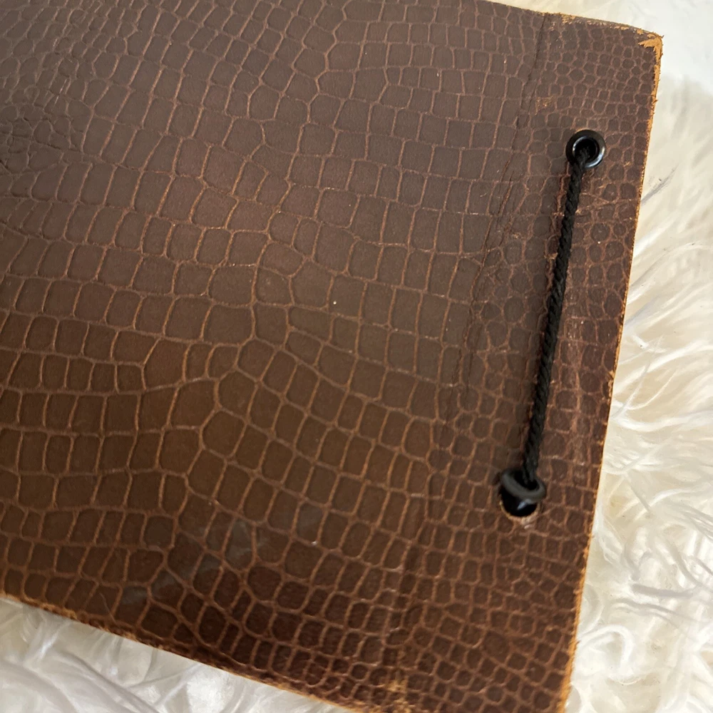 This vintage, genuine leather photo album book is a must-have for any photography enthusiast. The alligator embossed cover adds a unique touch to this book-bound album, which is perfect for storing and displaying your favorite memories. The brown color of the leather material complements any decor and adds a touch of sophistication to this timeless piece. The album is specifically designed for dry-mount albums and is perfect for anyone looking to add a touch of elegance to their photo collection. With its high-quality material and attention to detail, this album is sure to impress. Don't miss out on the opportunity to own a piece of history with this vintage leather photo album book.