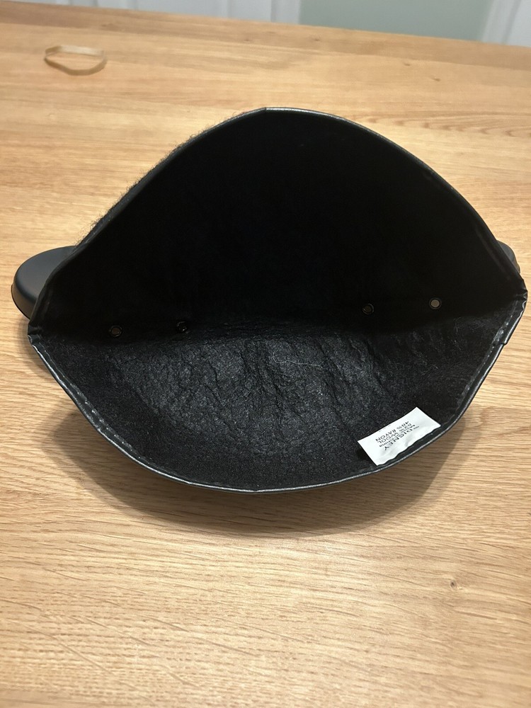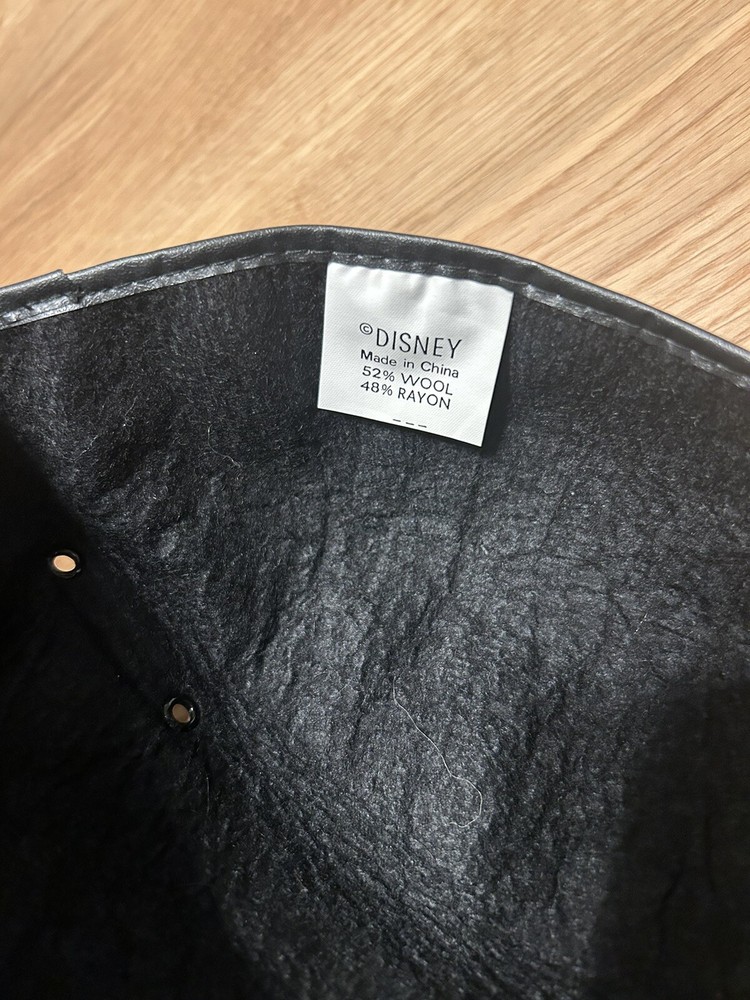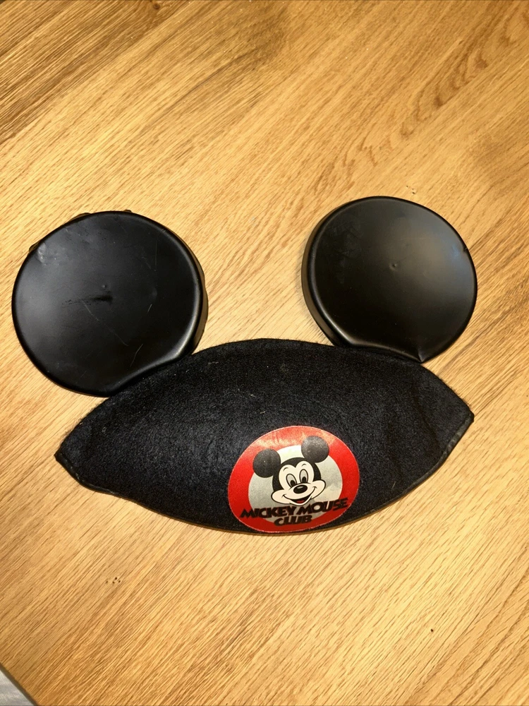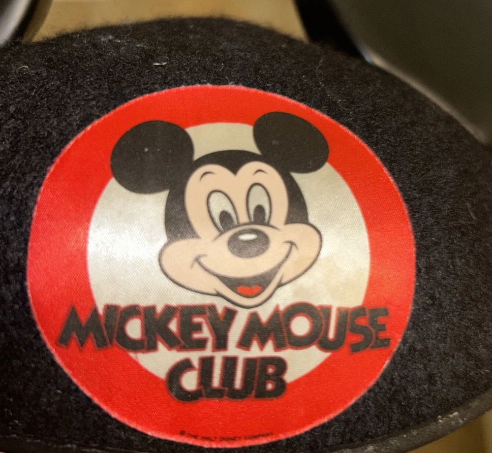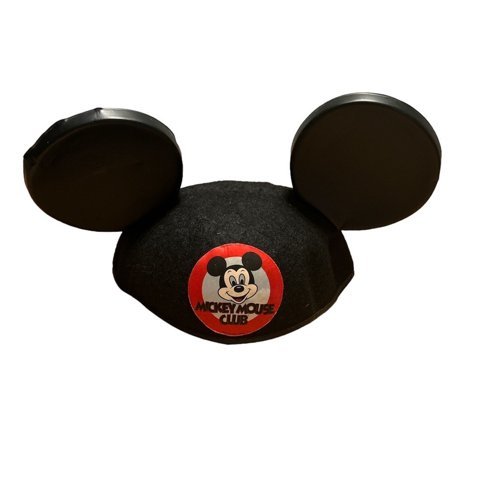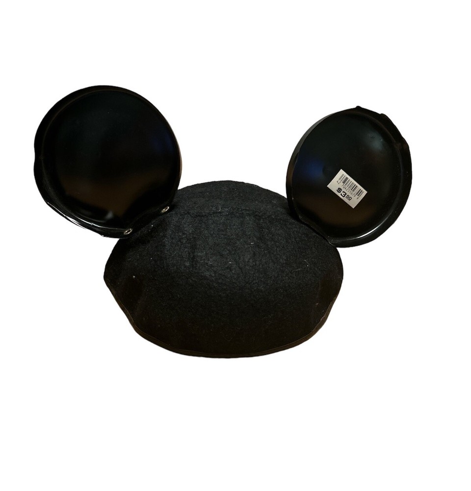 This vintage wool blend Mickey Mouse Club Ears hat is a must-have for any Disney fan. The black wool/rayon cap features the iconic Mickey Mouse design and is suitable for children. The hat was originally tagged at $3.50 and is a great addition to any Disneyana collection. Some adhesive seems to be showing through the white part of the logo, but is faint in appearance. Faint scratches on right ear. The hat is perfect for unisex wear and has not been modified. It was manufactured in the United States and is an officially licensed Disney product. This hat is a great way to show off your love for Mickey Mouse and Disney World. From a smoke free home.