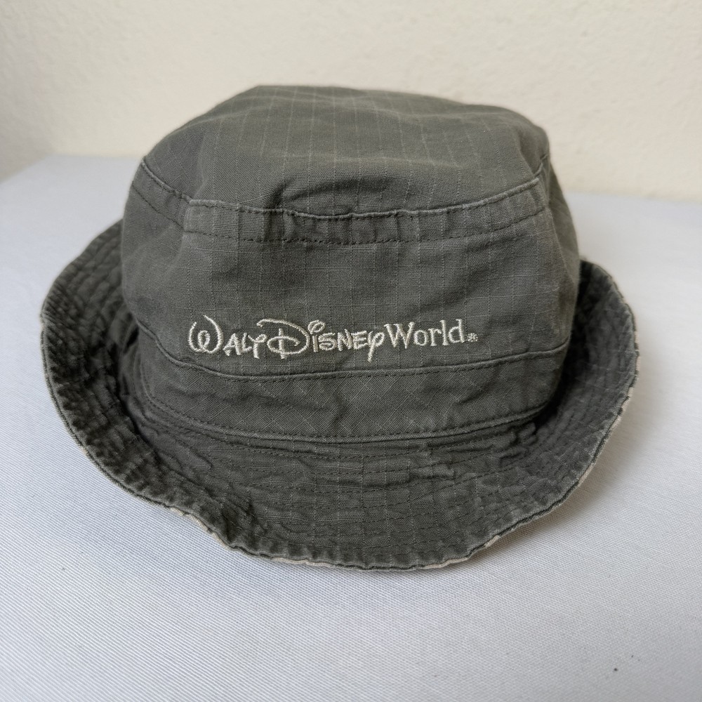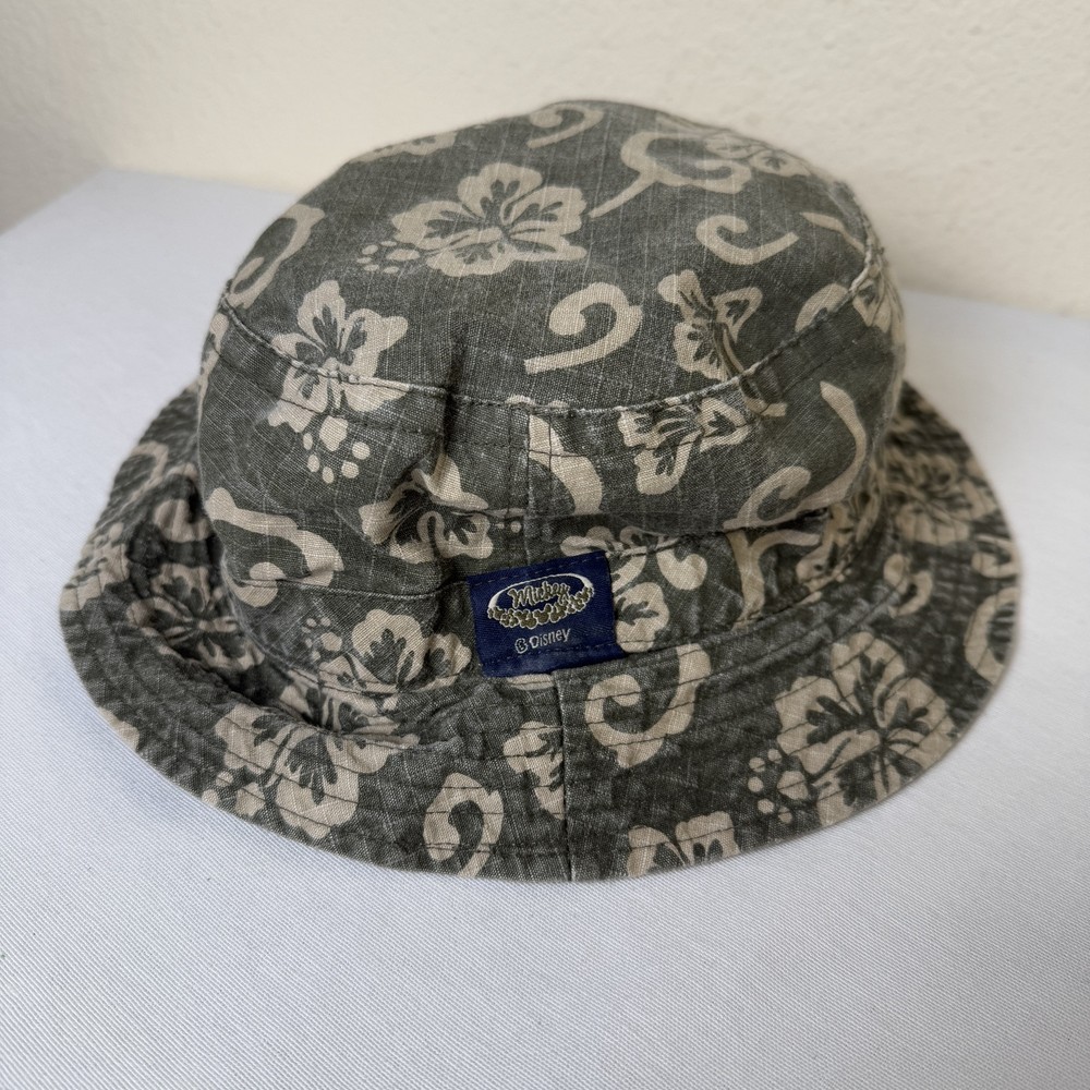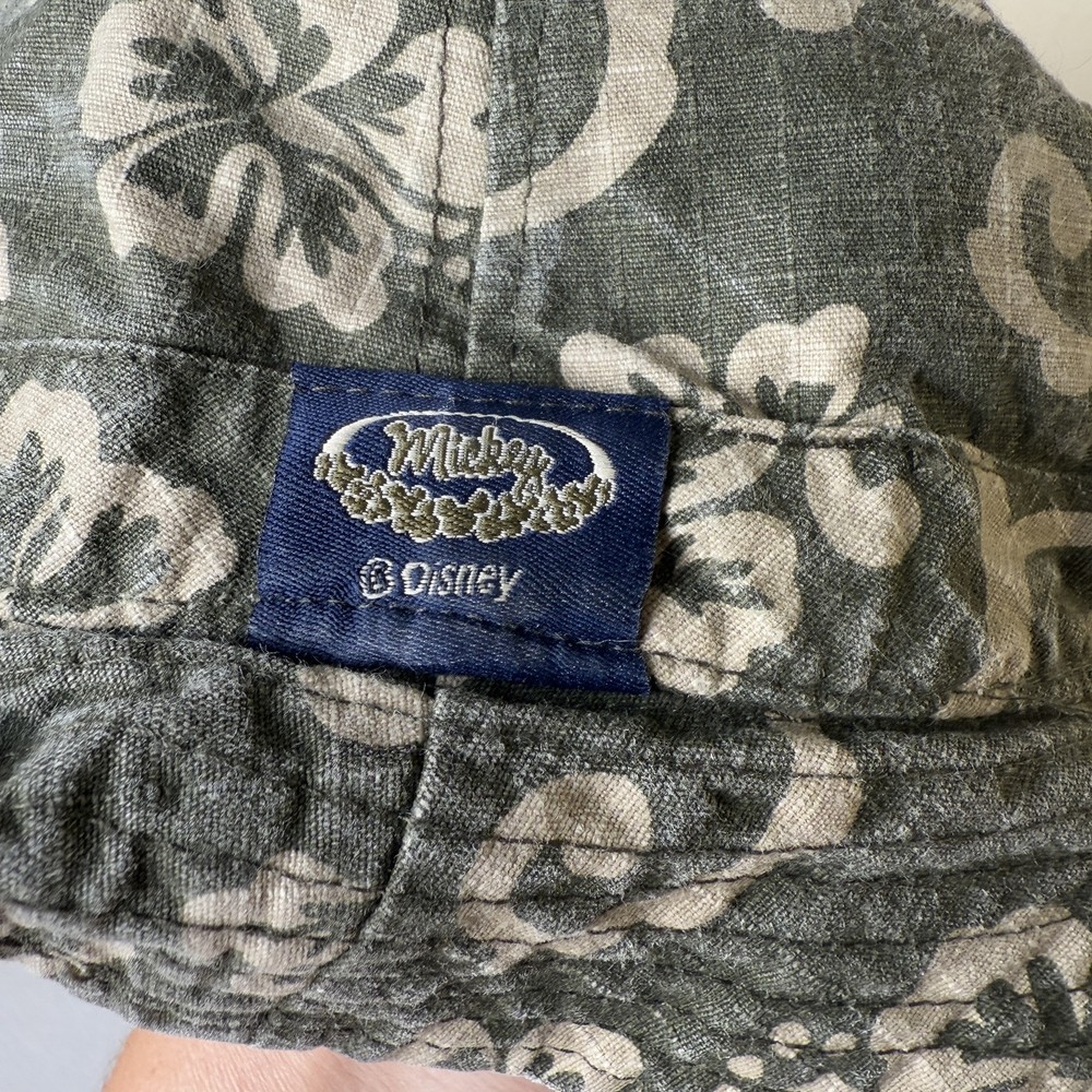 VTG Walt Disney World Bucket Reversible Hat Unisex OS Green Tan Floral Hawaiian