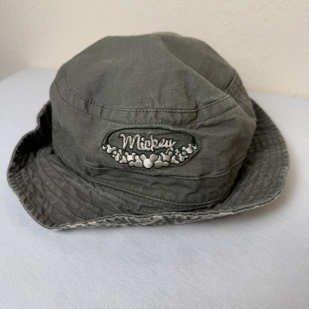 VTG Walt Disney World Bucket Reversible Hat Unisex OS Green Tan Floral Hawaiian...