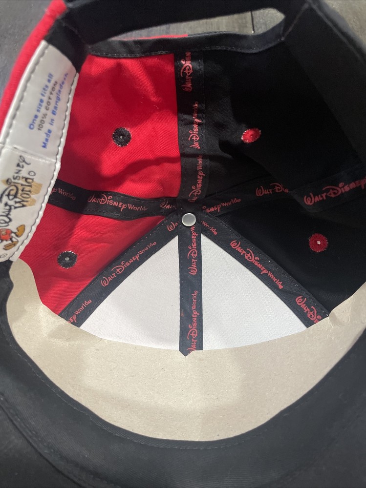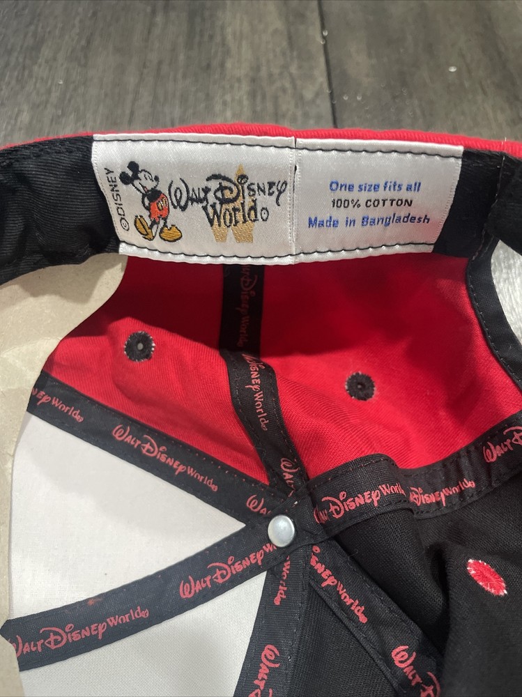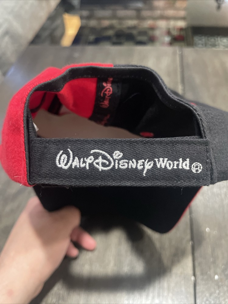 Add some Disney magic to your wardrobe with this Mickey Mouse Two Tone Red & Black Hook and Loop Hat Cap, exclusively from Walt Disney World. The iconic character is prominently displayed on the front of the hat, making it a must-have for any Disney fan. The hat is suitable for both adults and unisex wear, with a convenient hook and loop closure for an adjustable fit. This collectible item is perfect for any Disneyana collector or enthusiast, and is made in the United States. The red and black color scheme and Disney branding make it a unique addition to any collection. Don't miss your chance to own this Walt Disney World exclusive piece.