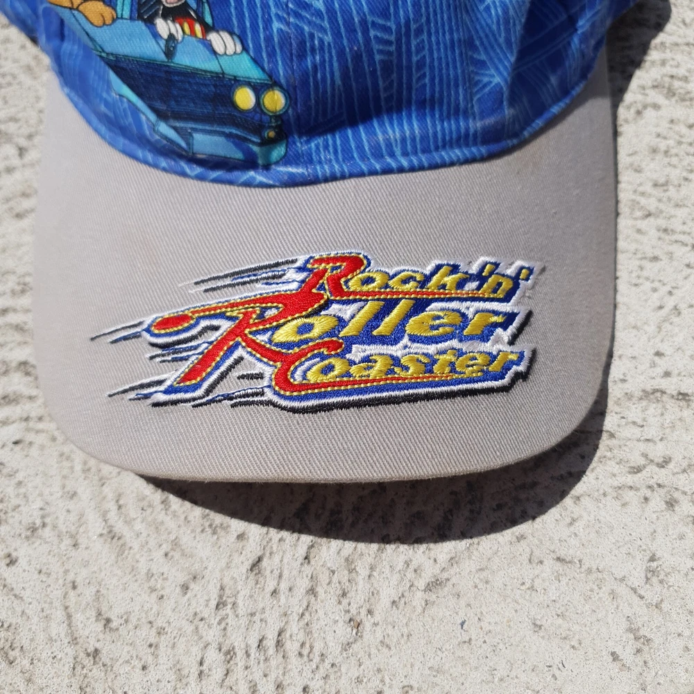 Vintage Y2K Walt Disney World Rock 'n' Roller Coaster Hat Cap Hard to find merch for the Rock n Roller Coaster it seems & this is one of the rarer items. Great full print graphic. Embroidered graphic on the brim. Disney MGM Studios on the strap. Some general wear including a small mark on the brim All items are shipped with tracking & care via Aus Post Please message me with any questions or concerns. Thank you very much for looking, & I hope you have a great day/night