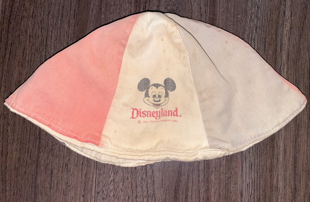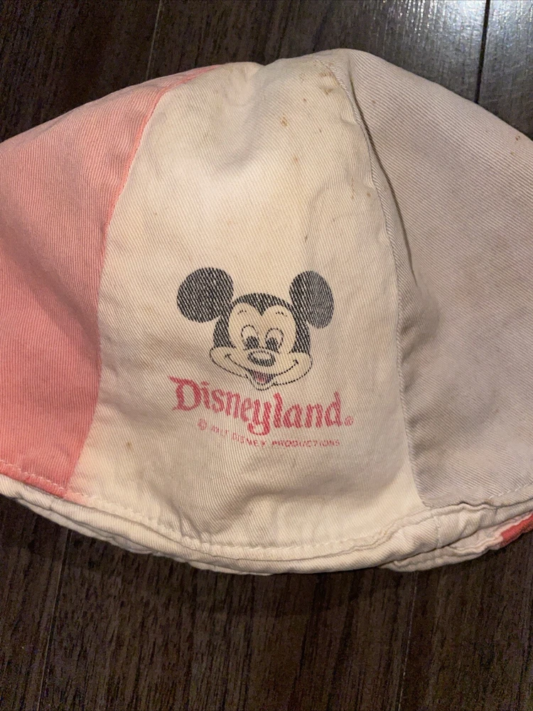 Vintage 1970s Walt Disney Disneyland Mickey Mouse 6-Panel Bucket Hat Red White & Blue Quite faded and not without stains/show of wear- see photos for detailed condition. *this hat was in storage and has not been washed, nor has an attempt been made to remove said stains*