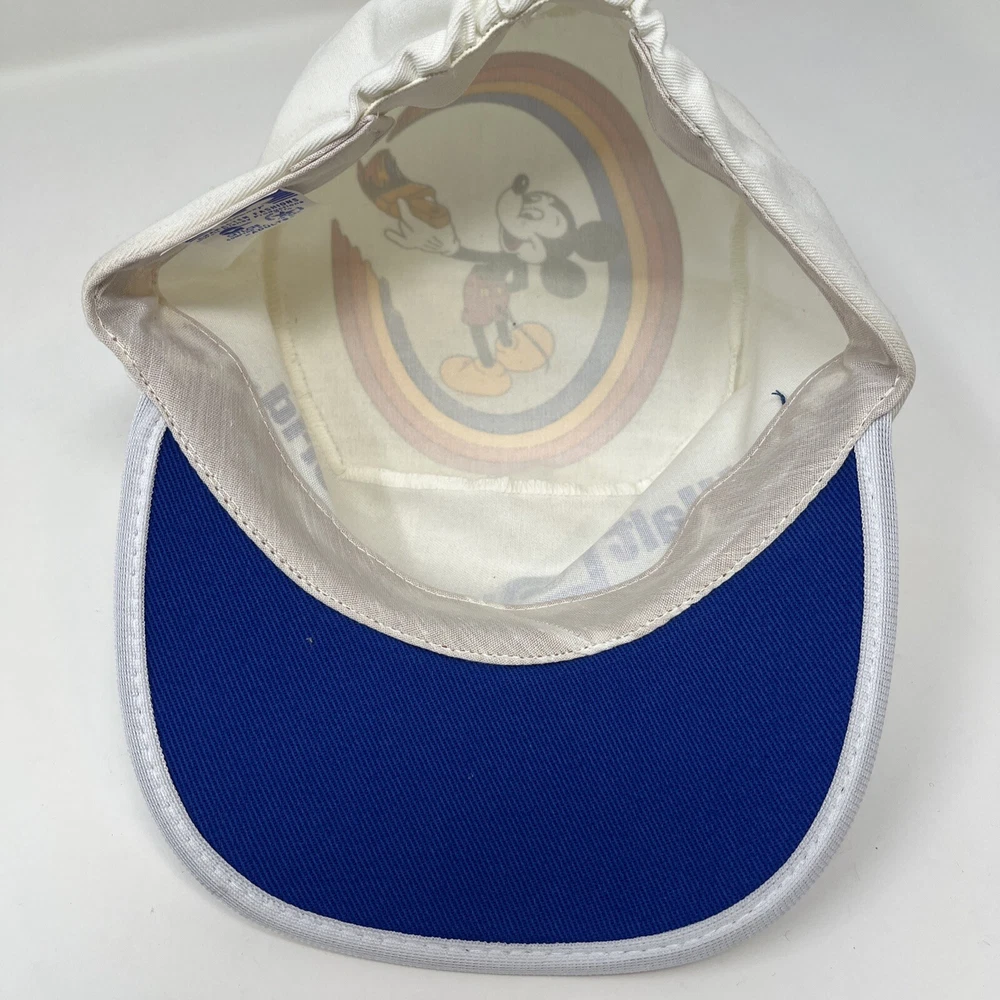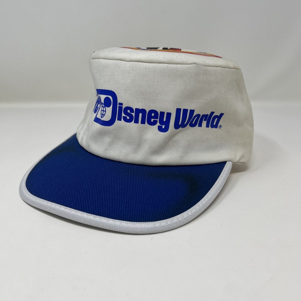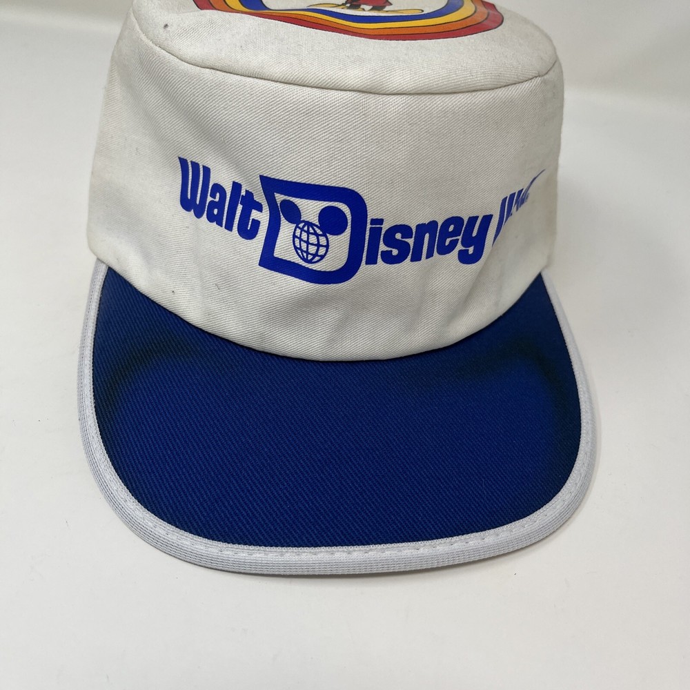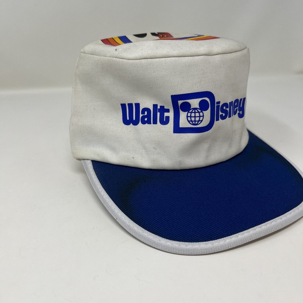 Vintage 1980s Walt Disney World Mickey Mouse Painter Hat Cap Retro Made USA. Good condition, the inside is spotless but the outside shows it’s age from storage and sitting on a shelf The brim has some discoloration and you can see on the dome the difference in what was folded and what wasn’t Should clean up well with the right experience