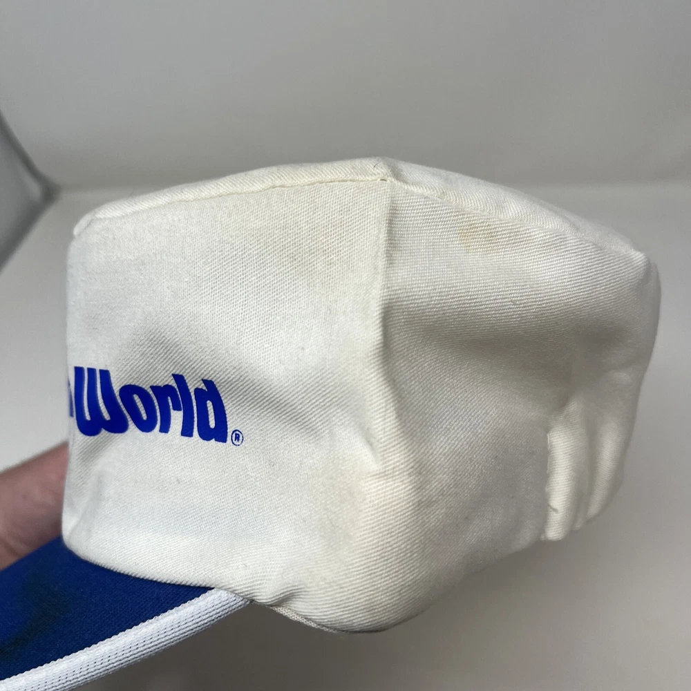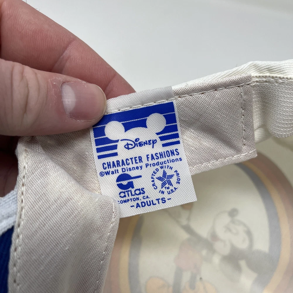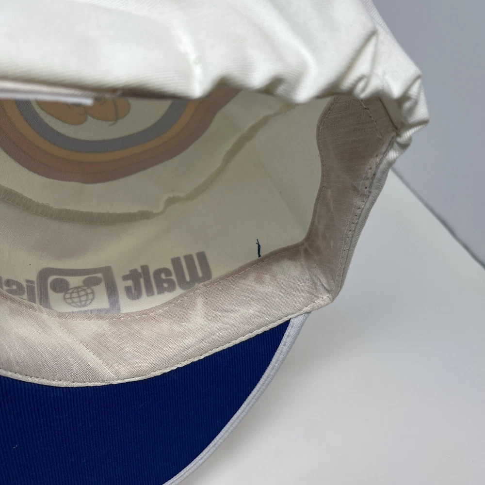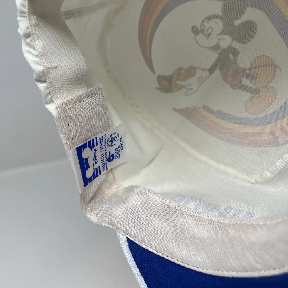 Vintage 1980s Walt Disney World Mickey Mouse Painter Hat Cap Retro Made USA. Good condition, the inside is spotless but the outside shows it’s age from storage and sitting on a shelf The brim has some discoloration and you can see on the dome the difference in what was folded and what wasn’t Should clean up well with the right experience