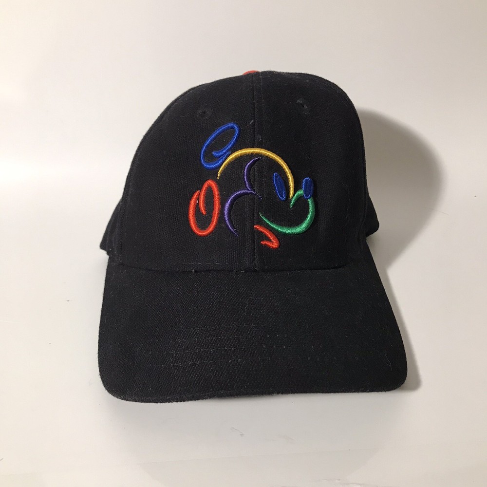 Vintage 1990s Walt Disney World Mickey Mouse Y2K Neon Embroidered Hat Cap.