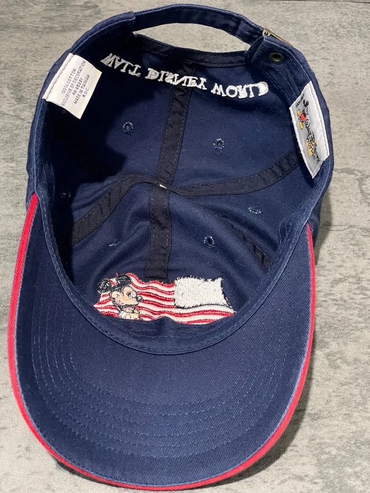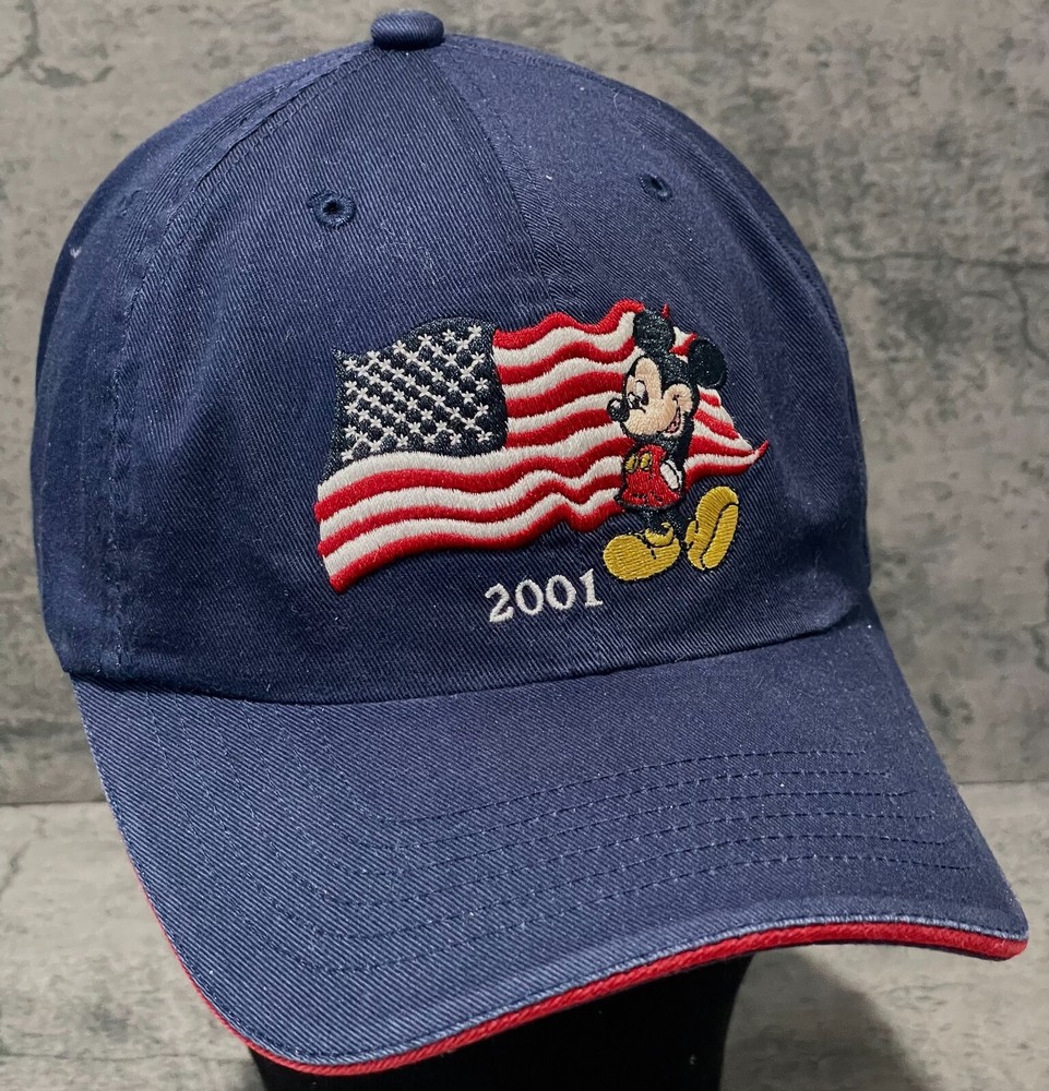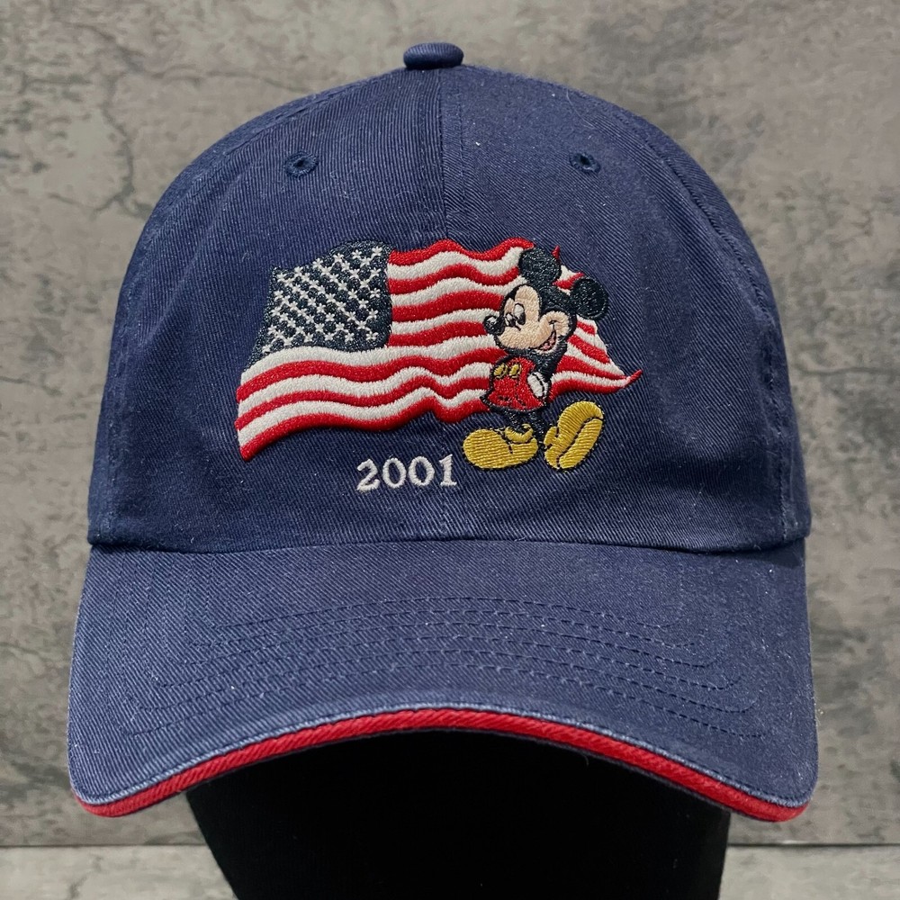 Pre-Owned. Minimal signs of wear. Clean inside and out. Please refer to photos for more details. - "Mickey Mouse USA Flag 2001" embroidered on front - Slightly curved brim - 100% cotton - Adjustable strap fits most heads