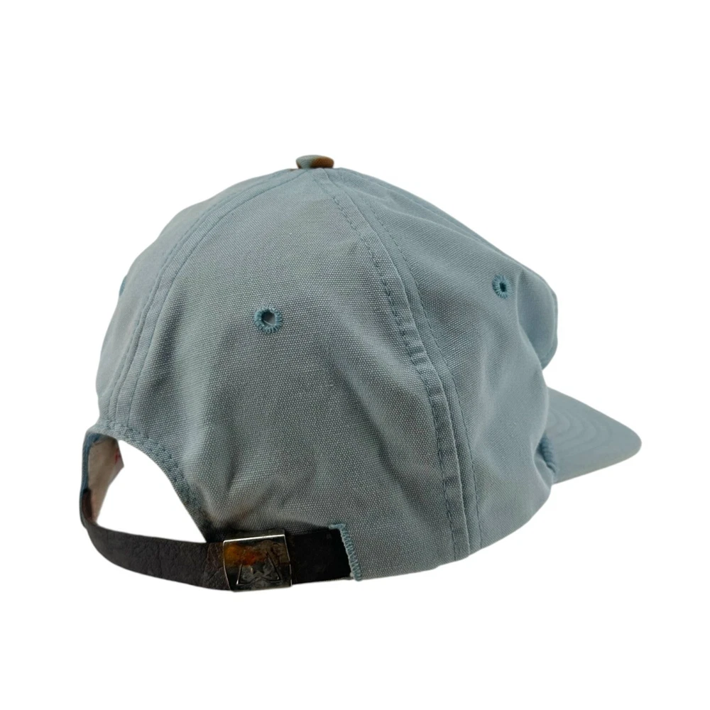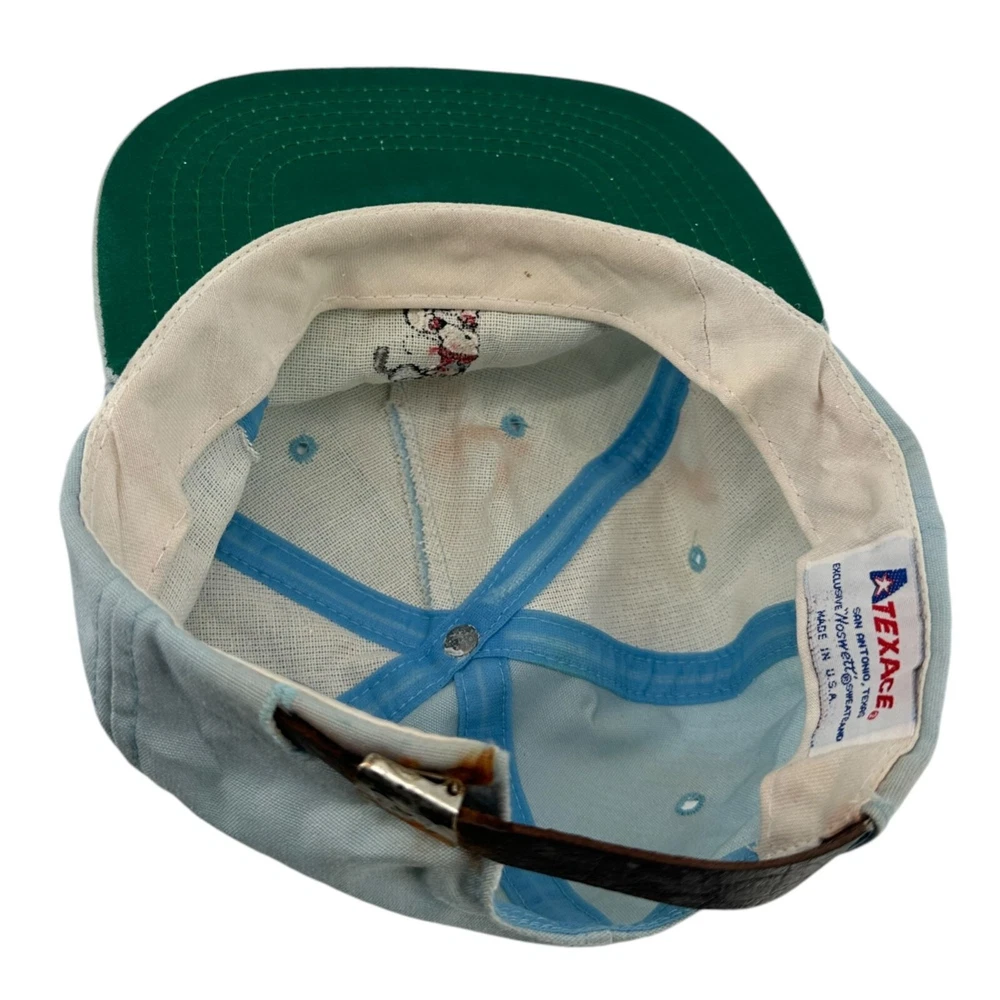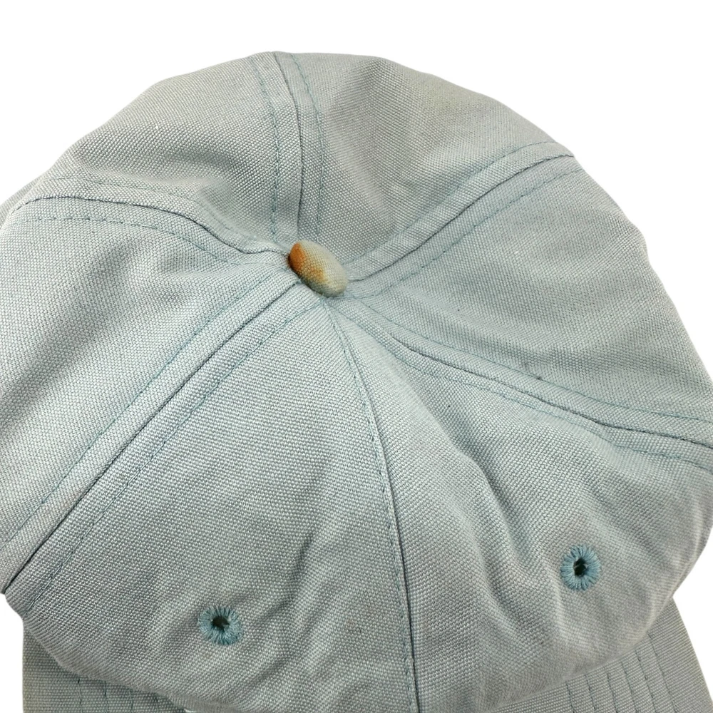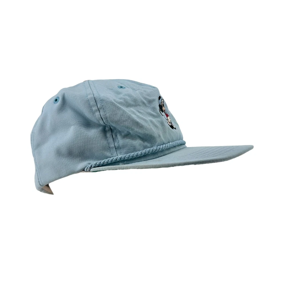 Vintage 80s Walt Disney World Golf Strapback Hat Sky Blue Mickey Mouse USA Made SKU:203-021 Features: • Strapback, Adjustable, Embroidered, Vintage • Made in United States Condition: Pre-Owned Some rust discoloration on back of hat by strapback, buckle, and to top button. Please, see photos! Any and all flaws will be shown in the detailed pictures. Please see pictures for an accurate description of the item and condition. Colors vary based on perception and screen display.