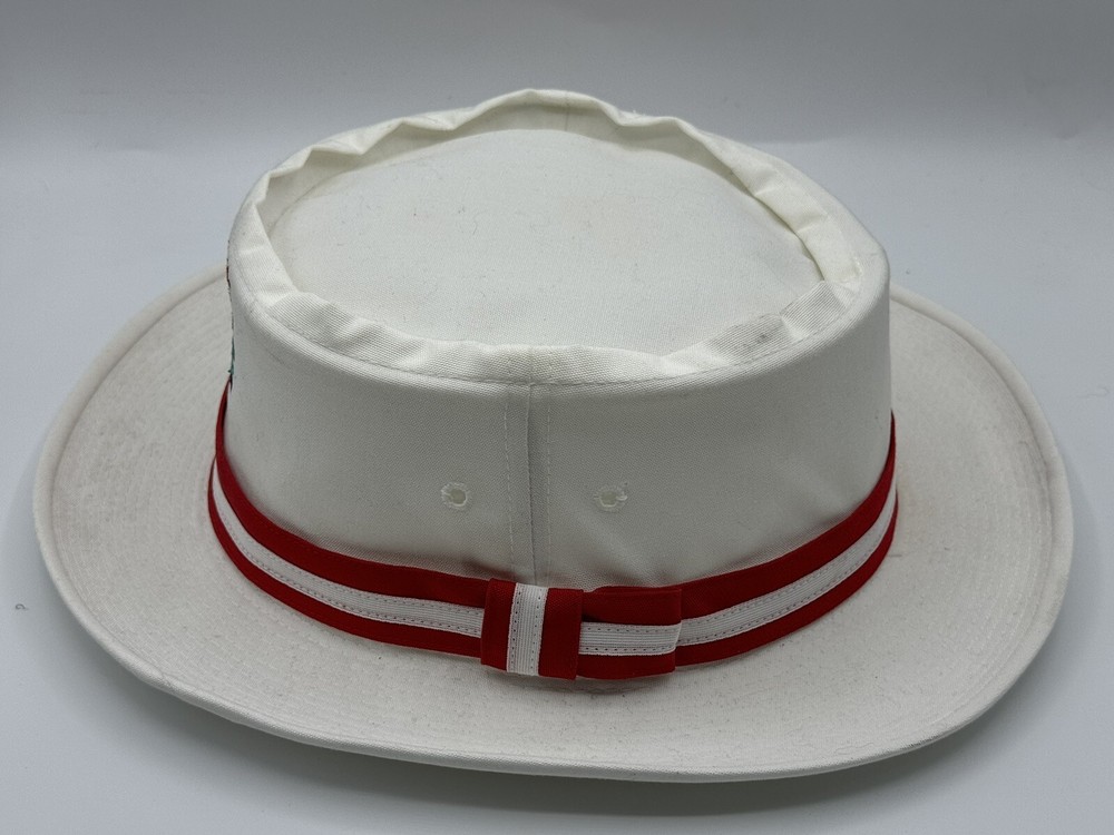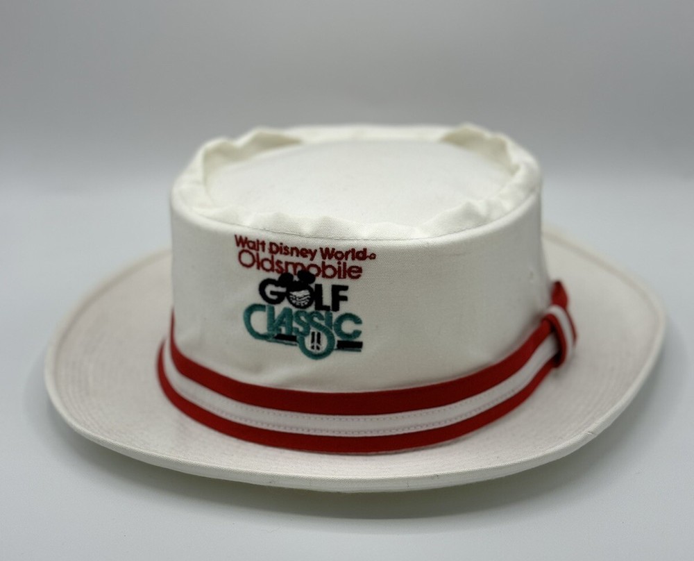 Vintage 80s Walt Disney World Oldsmobile Golf Classic White Top Hat Texace Pre-Owned in Excellent Condition! Minor staining on interior sweatband, as pictured. Also, minor staining by the tag, as pictured. Size: One Size Measurements: 8.25" x 7.25"; Hat Height: 3.75" Non-smoking home. Payment expected within 2 days of a winning bid & will be shipped in a box! Thank You!