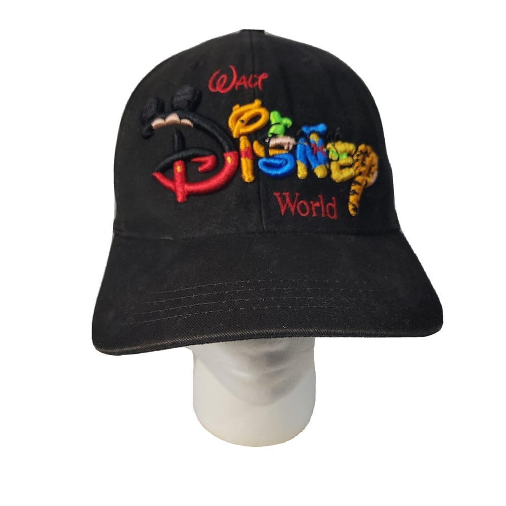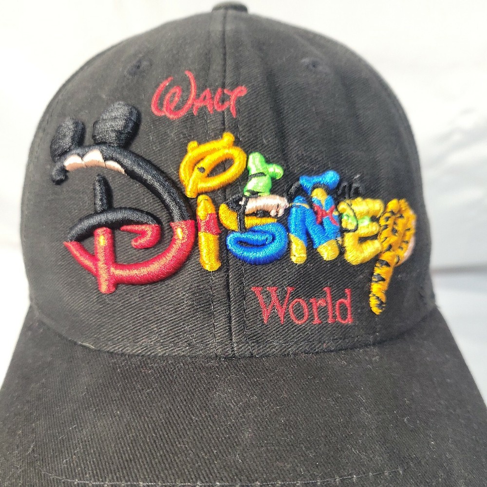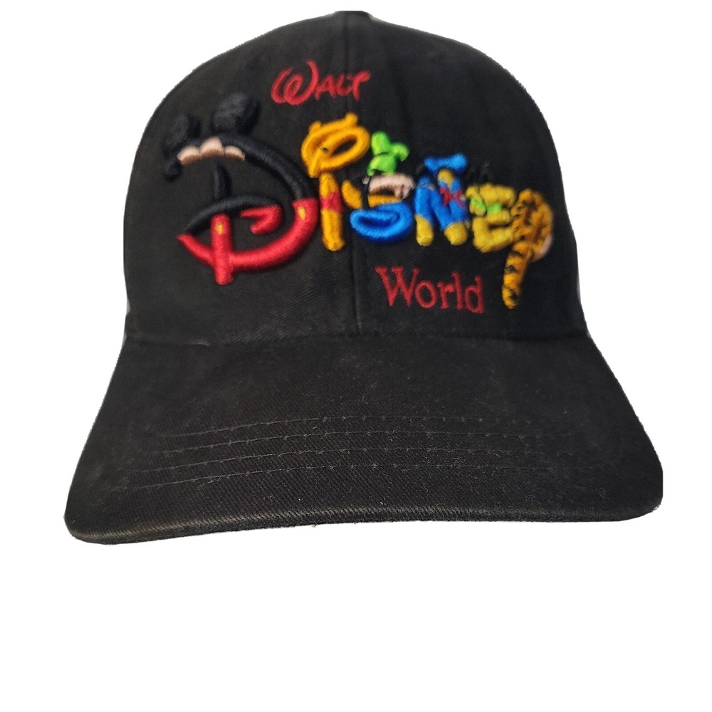 Vintage 90s Black Walt Disney World Character Letters Snapback Baseball Cap Hat...