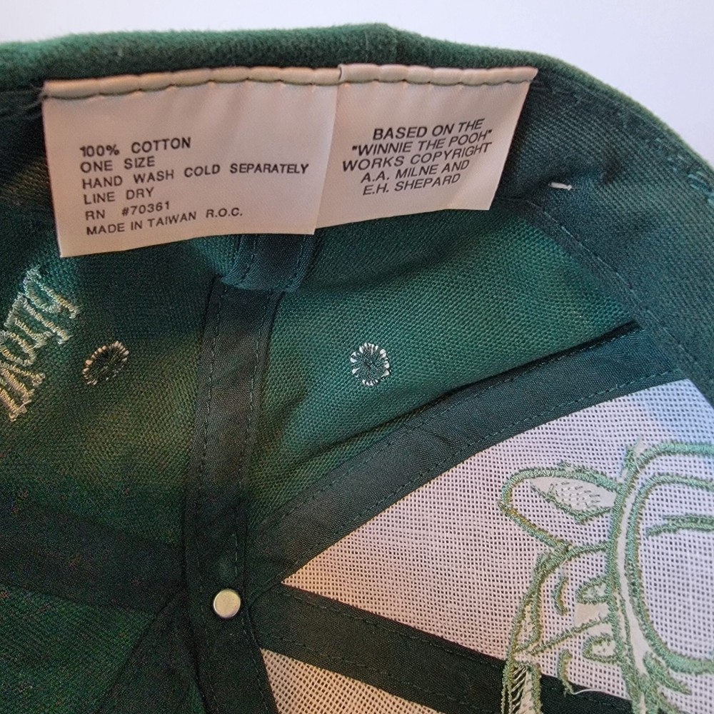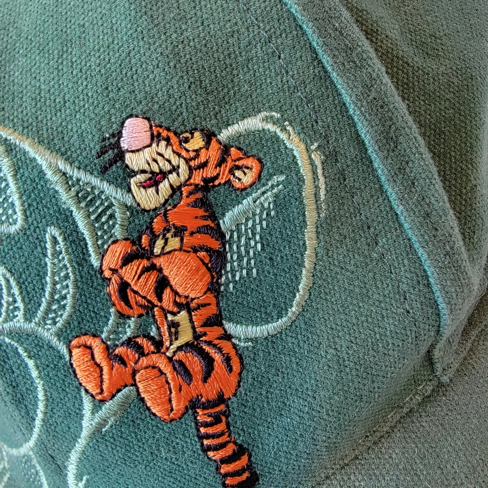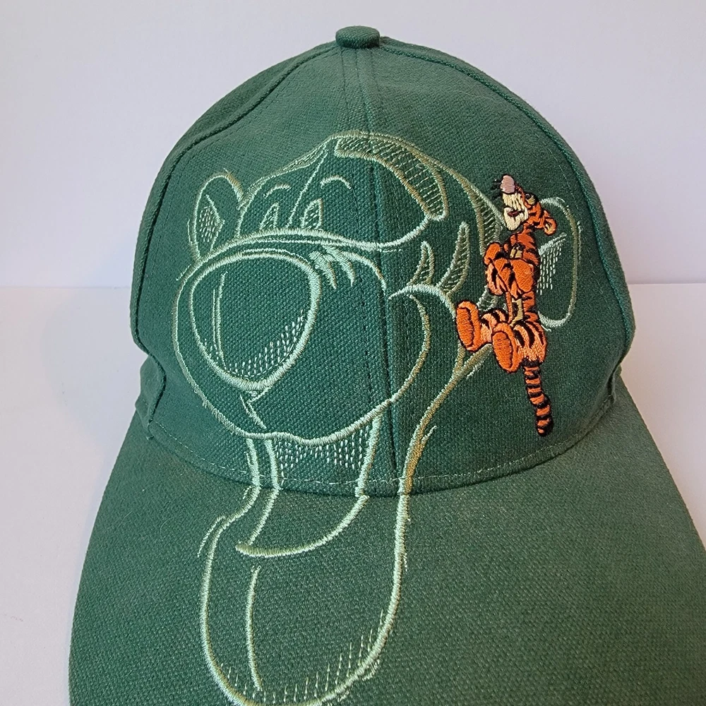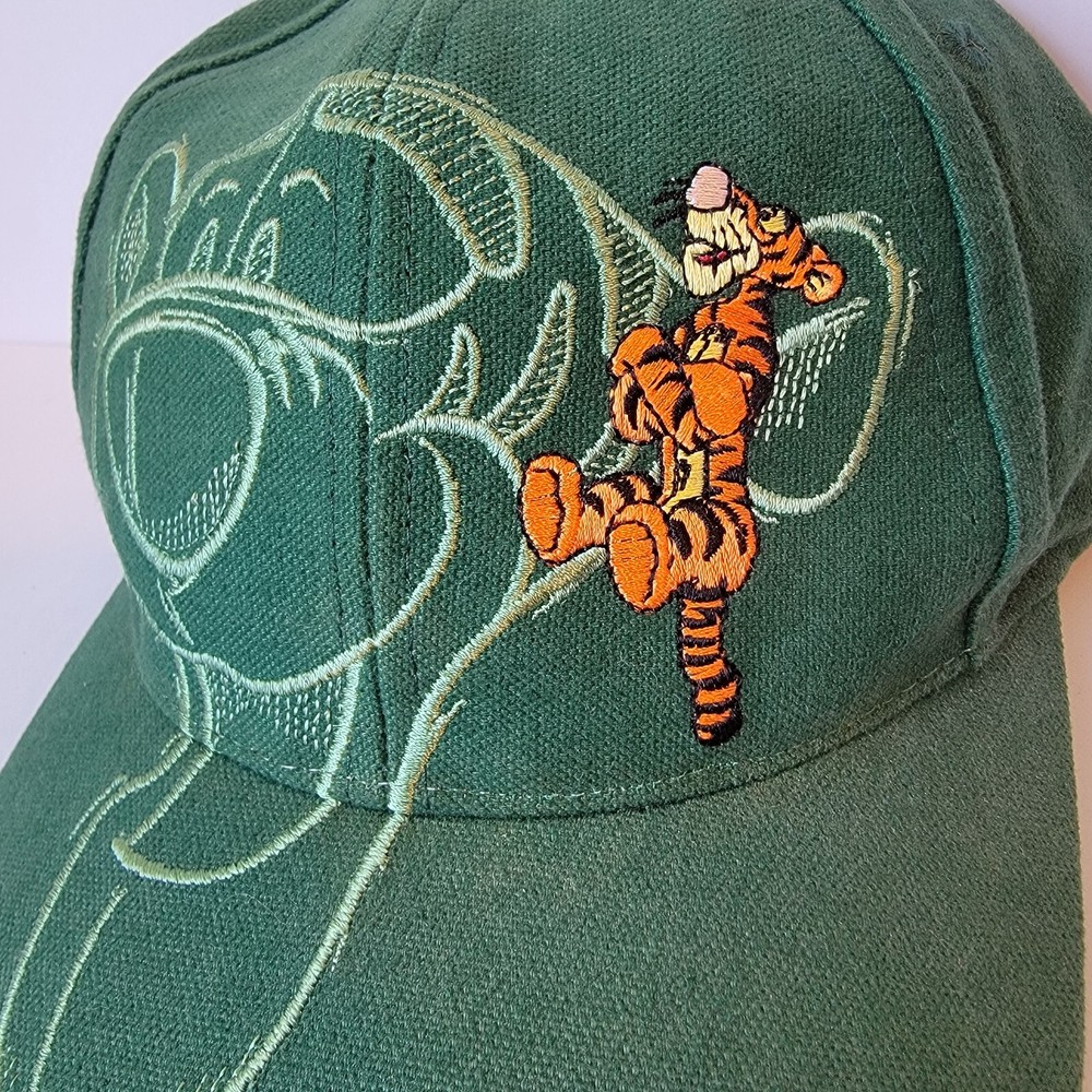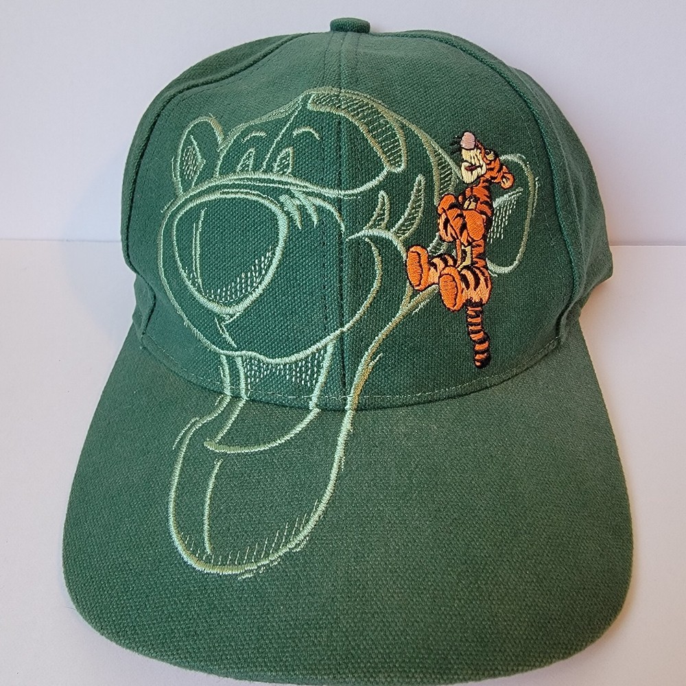 As the pictures show this is a beautiful hat and is basically new but I must put used in the description because of no tags. This vintage 90s Disney Tigger Walt Disney World snapback hat is a must-have for any Disney fan. The hat features a vibrant green color and is one size fits all, making it a great gift for anyone who loves Tigger or Disney. The snapback closure ensures a comfortable and secure fit, while the embroidered Tigger character adds a touch of whimsy to any outfit. Perfect for collectors of Disneyana or those who simply appreciate a well-crafted hat, this piece is sure to be a cherished addition to any collection.