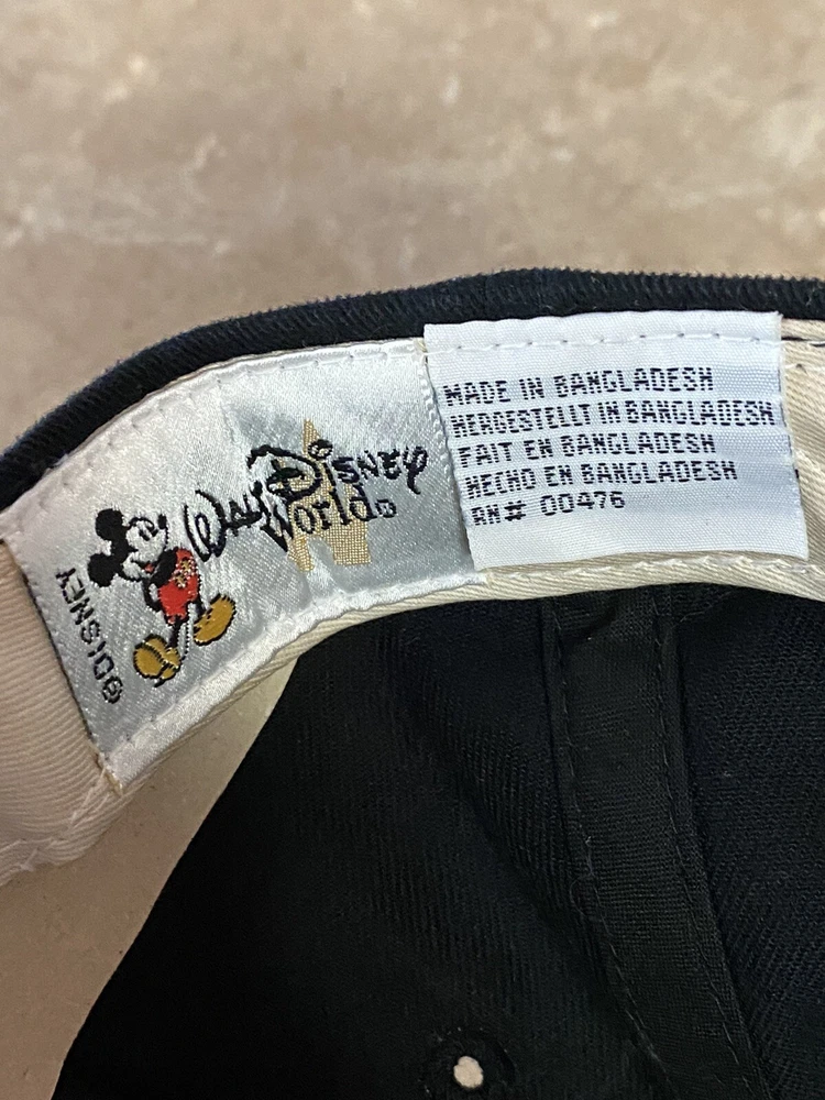 Vintage 90’s Mickey Walt Disney World Snapback Hat Cap Black.