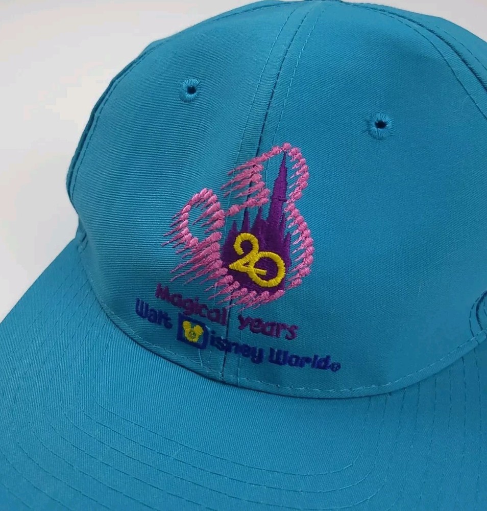 Vintage 90s Walt Disney World 20 magical years hat. Super cool piece and nice quality cap, light blue with multicolor embroidery. Great condition, has light general wear/slight fade Adult size cap, adjustable Any questions please feel free to ask Thanks for looking!