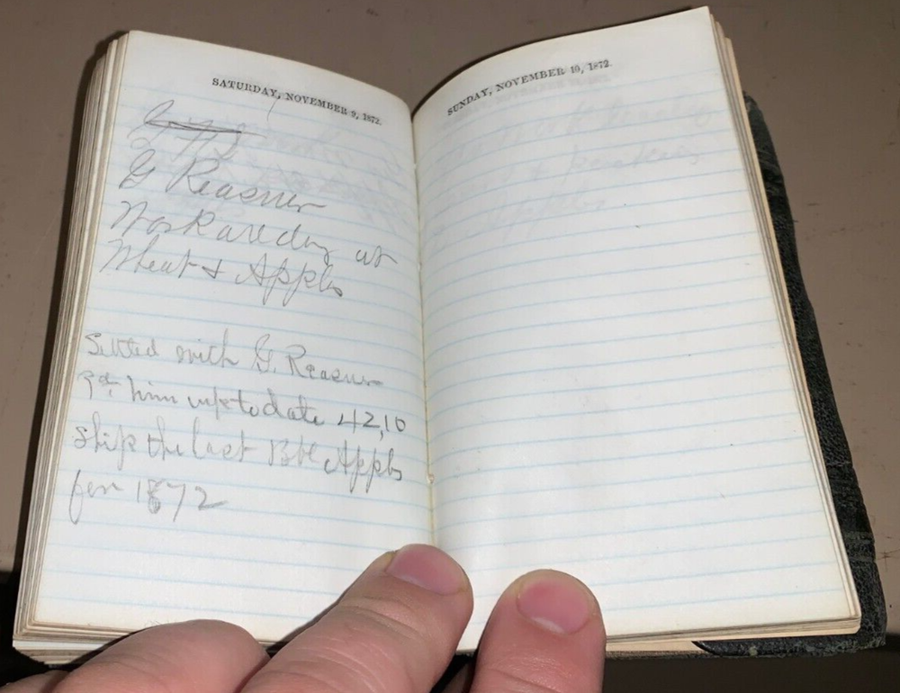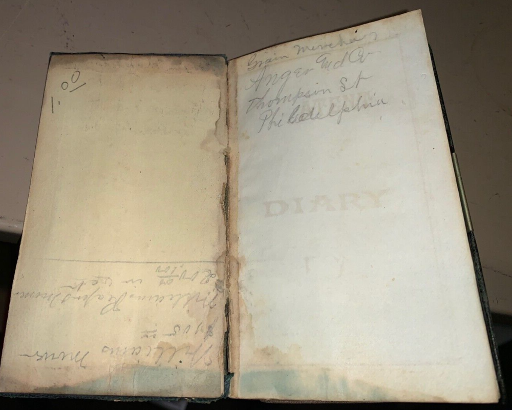 A very rare patent leather wallet calendar miniature book diary half filled out with mostly ledger style entries....