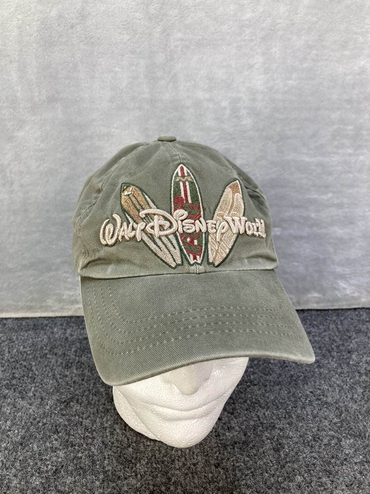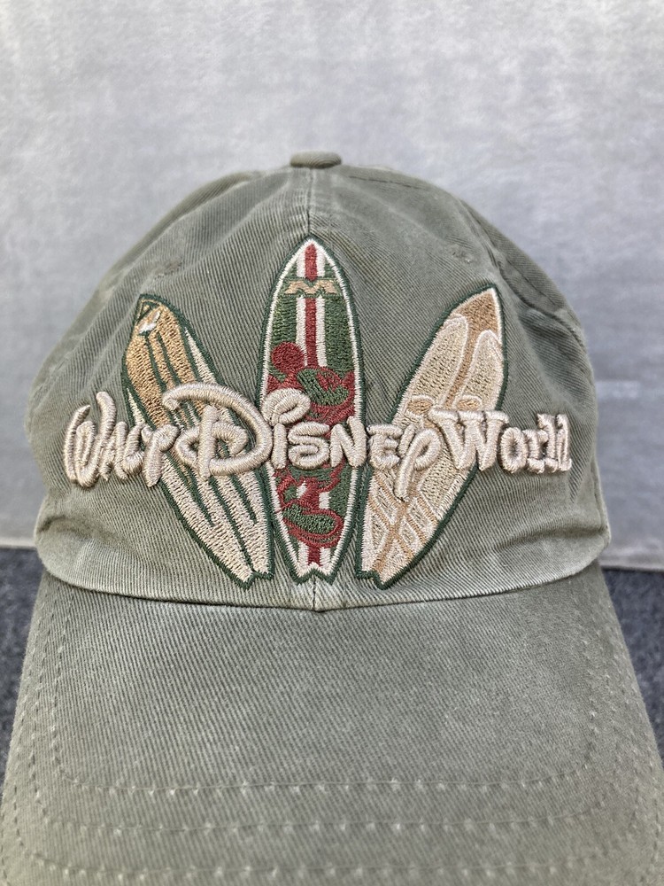 Vintage Disney Hat Adult OSFA Green Walt Disney World Surf Board Mickey Dad Cap. Condition is good. No holes, stains, but may potentially have minor thread pull as shown in pictures above. Same day fa...
