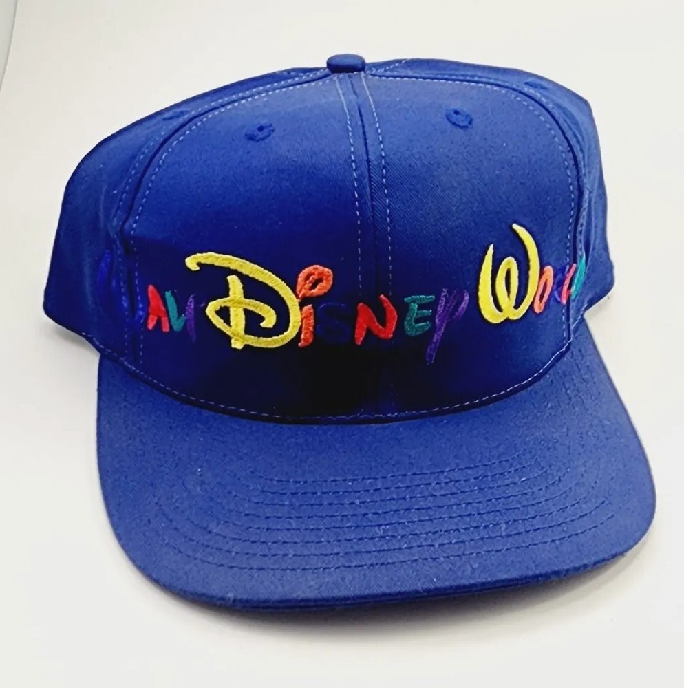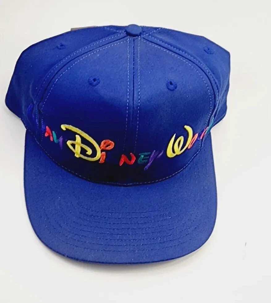 Vintage Disney Hat Cap Snap Back Embroidered Walt Disney World NWT Blue. This is a brand new vintage Walt Disney World embroidered lettering hat in blue with the original tags on. Snapback style. 1990's Disney hat label and original price tag. Shipped with USPS First Class Mail, Priority, or Ebay International Standard.