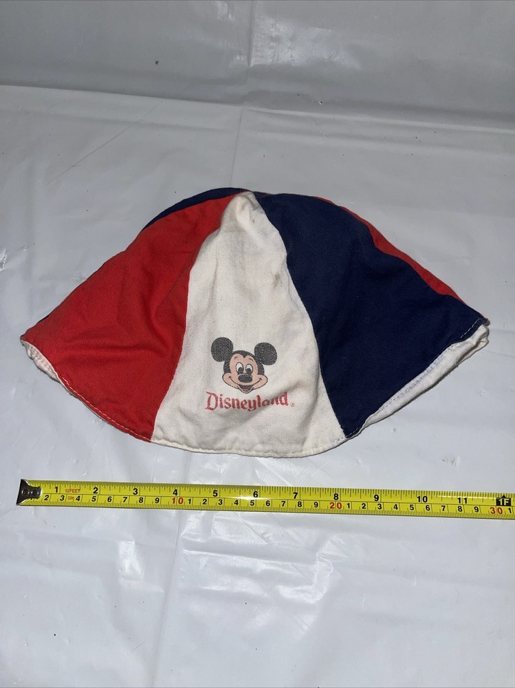 Vintage Disneyland 6-Panel Bucket Hat - Red, White, & Blue decent shape. No rips some small markings. Please see pics...