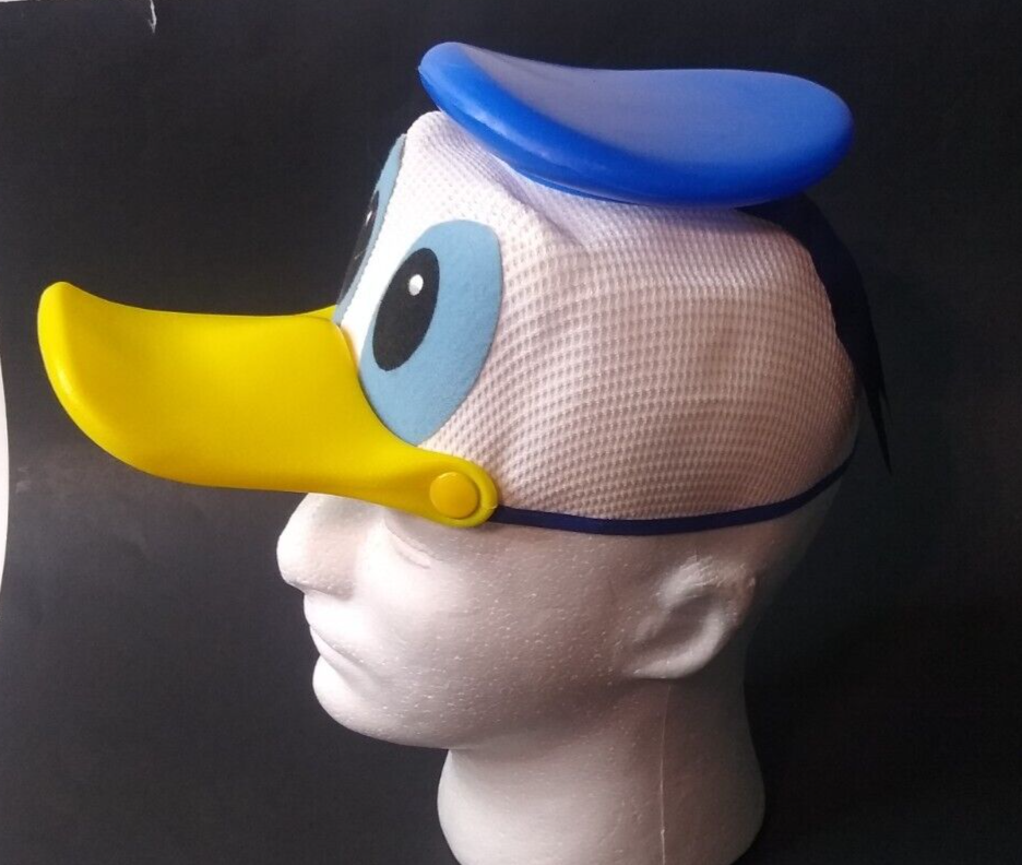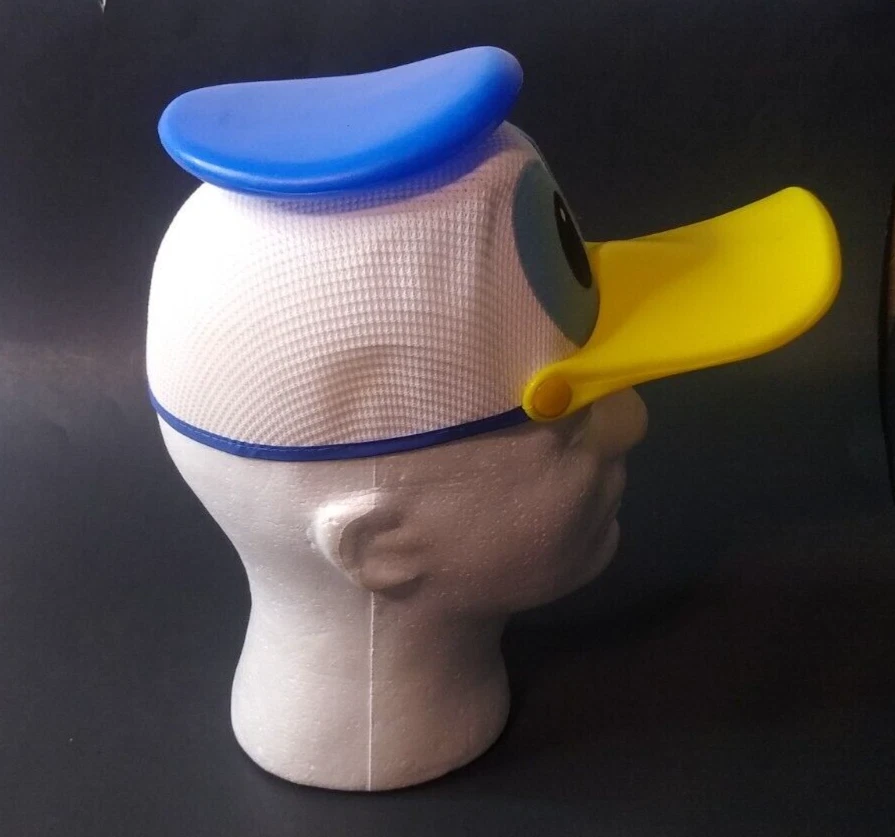Vintage Donald Duck Squeaker 3D Mesh Kids Hat Cap Walt Disney World Park. Very good condition Donald duck cap. No damage and appears to be very lightly used. Includes mesh material dome and thick plastic bill and hat. Hat includes famous ribbon. See measurements closely.