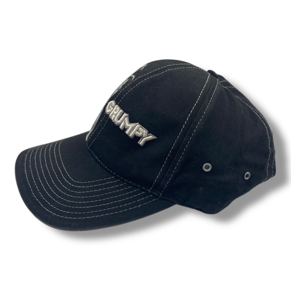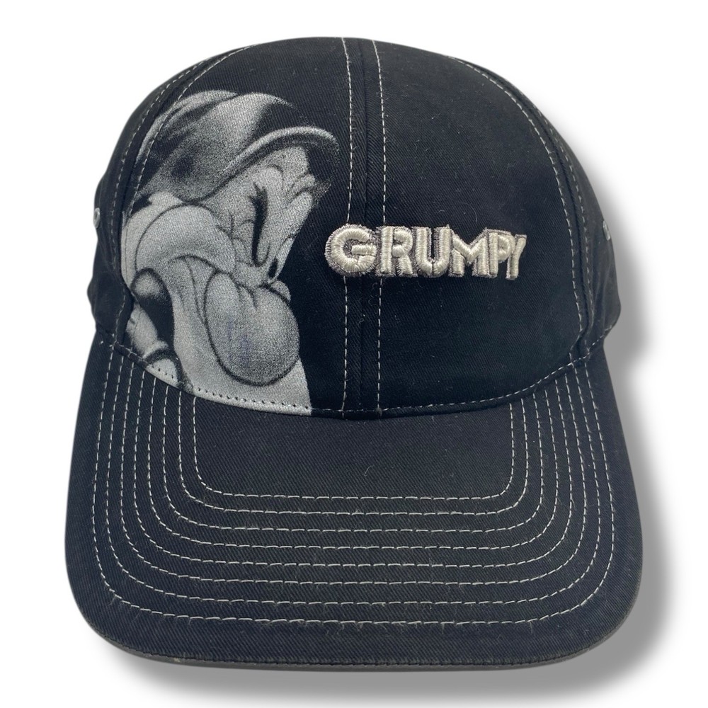 This Vintage Grumpy Hat from Disney World is a black strap-back hat featuring the iconic Grumpy character from Snow White and the Dwarfs. Made from a comfortable cotton blend material, this unisex hat is one size fits most and suitable for adults. With the Walt Disney World brand and a contemporary manufacturing time period, it is a perfect collectible for fans of Disney and Grumpy. Made in Bangladesh, this hat allows you to show off your love for Disney with a touch of vintage flair.