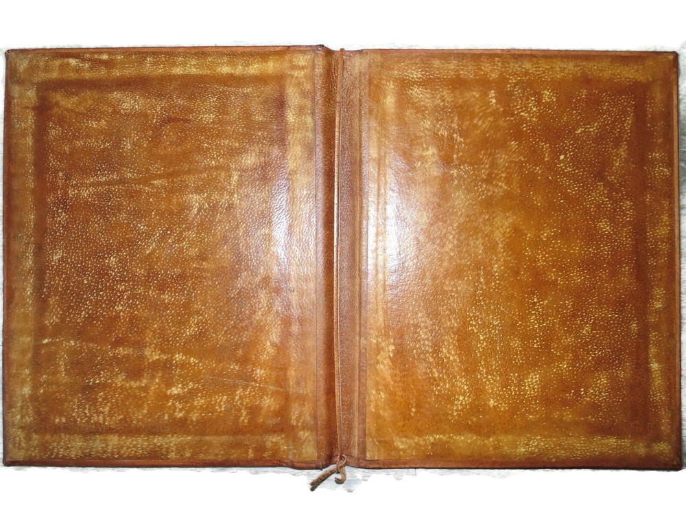 Item Description Measurements: 12 inches wide by 15 inches tall, can fit up to 1 inch insert - Menu, Portfolio, Marriage Certificate, Sign In Sheets, Pictures, Special Certificate, Paper Memorabilia Cover Hard Book in all Leather. c 1970 Authentic item. Used in Balkan Area of Bulgaria, Sofia. Hard cover leather. Brown, tooled. With Massive Brass Crest in the center, 3 lions. Fine Artisan hand crafted work. Can be used for storing art or journals or magazines or small format book Leather inside in brown color Pre-owned. Used, With very little Signs of Wear and Tear USA Shipping 8.99 FLAT FEE INTERNATIONAL SHIPPING WORLDWIDE WITH TRACKING NUMBER