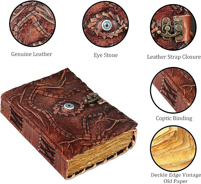 Hocus Pocus Book Antique Charcoal Book of shadows Blank journal hocus pocus Eye Journal - leather notebook is made with 200 pages of Antique Deckle Edged Paper which looks like it was pulled from history. You will fall in love with the the antique handmade vintage paper which is unique to our spell book