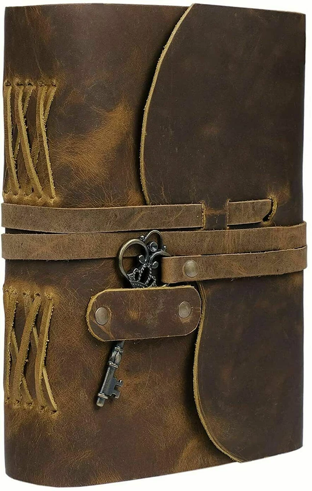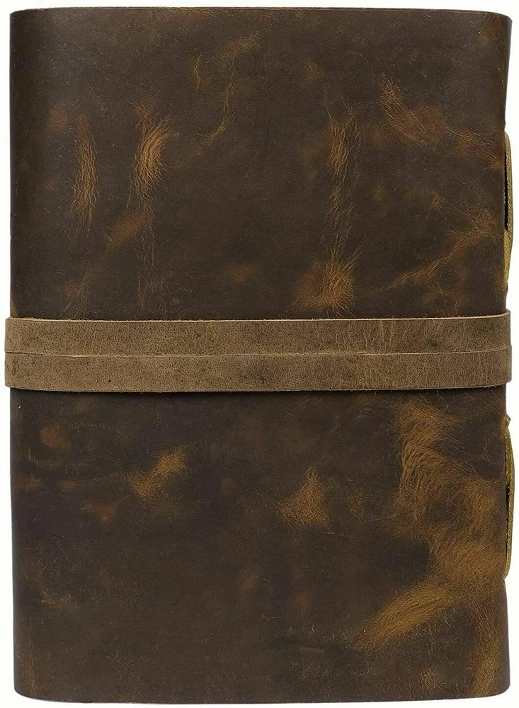 ✔️ PERFECT HANDCRAFT JOURNAL - Made from 100% Buffalo Leather with Antique Deckle Edge Paper. This Book Is Hand Crafted by Artisans Working with Leather for Decades. The Color of The Journal Is Very Unique Vintage Brown. ✔️ Use Any Kind Of Pen - Write/sketch/doodle on your journal notebook with a Fountain Pen Calligraphies, Ball Pen, Brush Pen, Acrylic Colors, Watercolor. IDEAL USE AND PERFECT GIFT – Perfect Use for Business Executive, Poetry Work, Journalists, Craftsman, Writer. A Lovely Treat for Your Loved Ones for An Anniversary, Birthday or Graduation Present, Or for Someone Starting A New Adventure and A Perfect Gift for Those Who Love Vintage One. ✔️ Dimension – (7” X 5” X 1.5”) With Uncut Deckle Edge Paper, Easily Handle Notebook, You Can Fit with Minimum Space, Easily Handle in Long Journey. Once You Have Used It You Will Feel Like You Have the Best Journal in the World. ✔️ BINDING AND KEY BOOKMARK – Binding Is Made by Hand Stitching Which Having Enough Strength That the Paper Never Comes Out. The Key Is Very Antique Can Be Used as Bookmark. The Leather Strap Wrap Around the Journal Is Complete Solution for Paper Safety and Open-Close the Journal. The Journal Made by High Quality Buffalo Leather and Paper Have Been Used Is Vintage Historical Paper Which Is Very Durable.