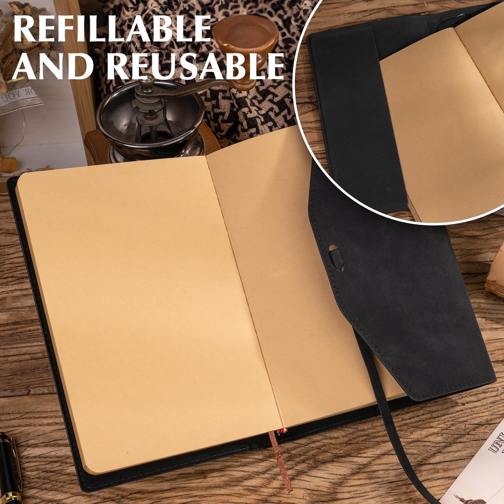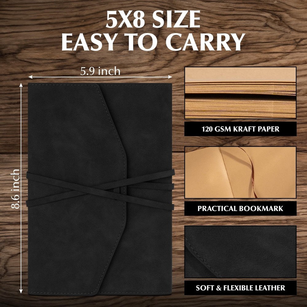 Vintage Journal for Women Men Leather Bound Junk Journal Notebook 160 Pages Book of Shadows Journals for Writing Diary Travel Journaling Sketching Scrapbooking, 5.9x 8.6 in, Soft Cover, Black Description Features: VINTAGE JOURNAL: The journal cover is made of high quality vegan-friendly leather, which has a soft, suede-like feel, vintage and charming. And its leather strap can keep leather journal closed, adding great mystery to writing and diary! PREMIUM KRAFT PAPER: The diary journal is made of 120 GSM vintage style unlined kraft paper, which complements the cover. 160 pages of blank paper for a smooth creative experience and not easy to bleed and ghost. REFILLABLE& REUSABLE: Unique fillable design, you can fill it with fresh paper to begin a new adventure! Reusable as a travel journal, artist's sketchbook, food diary, junk journal book, daily planner, vintage journal planner for a wide range of uses. COMPACT & TRAVEL-FRIENDLY: Ideal 5.9 x 8.6 inches size, compact enough to carry around but with plenty of space to write down thoughts or ideas. And leather journal comes with a ribbon bookmark. Whether for daily travel notes, or Book of Shadows, this journal is a perfect mix of style and practicality. PERFECT GIFT FOR MEN/WOMEN: This vintage journal is a sophisticated and timeless gift for a wide variety of recipients. A lovely gift for an anniversary, birthday or graduation gift, or for someone embarking on a new adventure! Product Details: Brand: MINICAGIE Color: Black Cover Material: Faux Leather Style: Journal Notebook Special Feature: Bookmark, Soft Cover, Refillable Specific Uses For Product: Scrapbooking, Journal Writing, Book of Shadows, Travel Diary, Sketching Binding: Unknown Binding Manufacturer: MINICAGIE Manufacturer: MINICAGIE Brand: MINICAGIE Item Weight: 1.01 pounds Package Dimensions: 8.74 x 6.22 x 1.1 inches Item model number: AW14-2T Color: Black Cover Material: Faux Leather Manufacturer Part Number: AW14-2T Date First Available: August 26, 2024 Handling We will ship all orders within 3 business day of payment. Delivery We Do Not Ship Outside of the Continental US. Return Policy All items qualify for returns within 30 days of receipt. Buyer is responsible for return shipping on any item that is not damaged. Feedback We take our reputation seriously, we buy and sell online, so we understand the value of trust. If you are unsatisfied with your order, please contact us and we will work with you to resolve it to your satisfaction.