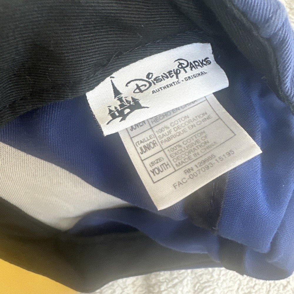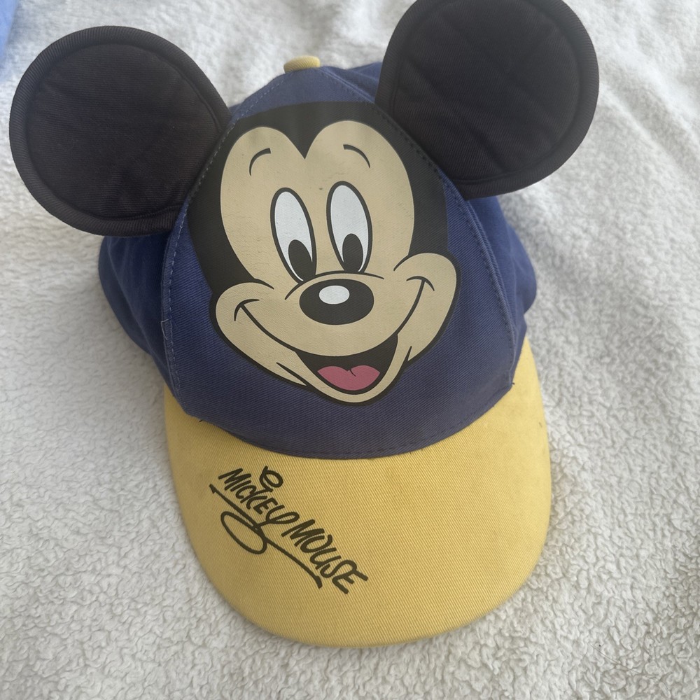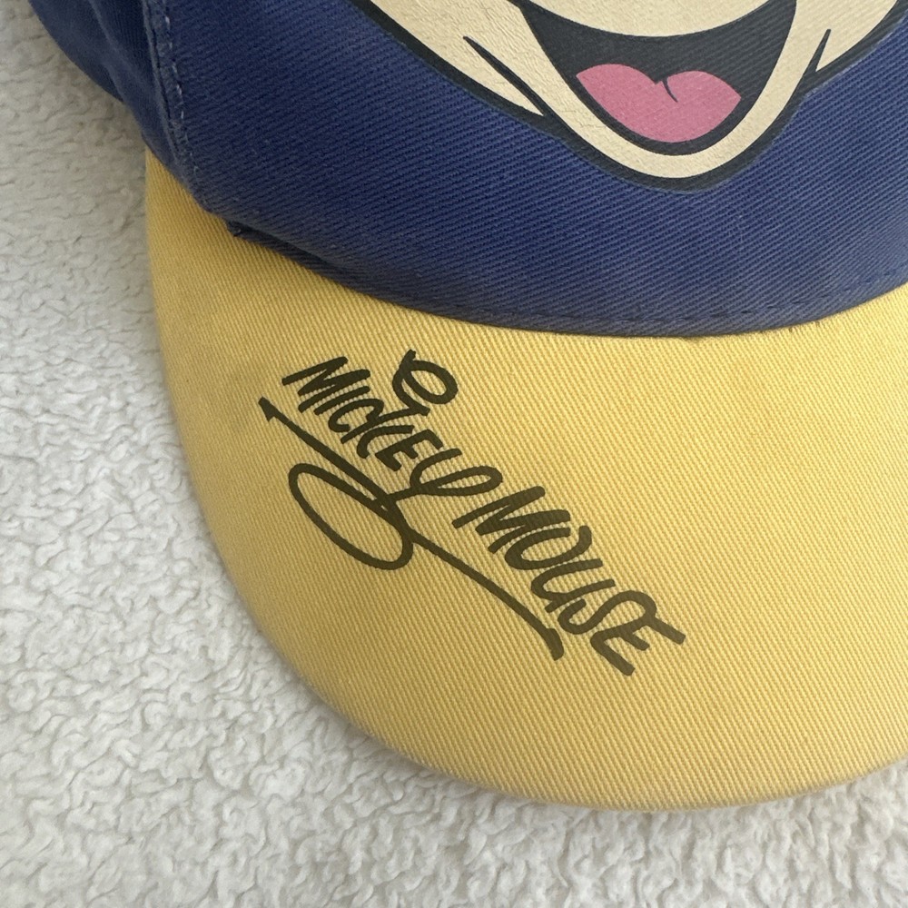This vintage Kids Mickey Mouse Hat is a Disney Parks souvenir featuring the iconic Mickey Mouse ears face signature design in blue and yellow. Made in China, this youth-sized hat is suitable for both kids and adult women who are fans of the Disney franchise. Perfect for wearing during Easter celebrations or everyday to showcase your love for the beloved Mickey Mouse character, this hat is a must-have collectible for any Disney enthusiast.