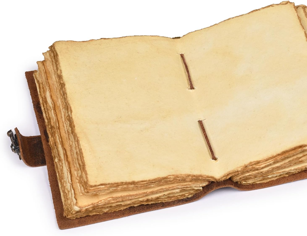 VINTAGE LEATHER JOURNAL: A Perfect Journal for Women and Men by Leather Village. This Vintage Journal is Made from Genuine Buffalo Leather which is naturally tanned with oils and is chrome free. As these Daily Journals are made with genuine Cruelty free leather so each vary in look and shade producing a unique item. JOURNAL NOTEBOOKS WITH STURDY BINDING: Belt Wrap around closure with Antique Bras lock to keep the papers of the journal safe when not being used. A sturdy hand stitched binding to make sure that no paper comes out loose. WATERCOLOR PAPER: This leather Sketchbook comes with handmade deckle edges paper which is made from recycled cotton waste these old Paper are No Bleed Scrapbook Paper. The Mixed Media Sketchbook is Suitable for Writing, Watercolor, Acrylic Colors, Pastel Color and all Dry & Wet Mediums. Use it like Sketch Pad, Watercolor Sketchbook etc. PERFECT GIFT: This vintage-inspired journal serves as an exquisite and timeless gift suitable for a diverse range of recipients, including women, men, teen girls, boys, and cherished grandparents. A lovely treat for your loved ones for an anniversary, birthday or graduation present, or for someone starting a new adventure LEATHER VILLAGE PROMISE: - Leather Village Leather Bound Journal comes with the Trust and promise of Purity of craftsmanship with each Writing Journal. Product Description LEATHER VILLAGE Premium Old Vintage Journal for Men & Women The Perfect Journal for Creatives, Travelers, and Thoughtful Souls An ideal gift for artist writers, travelers, graduates, friends, or anyone who has a love for writing and note-taking. A Journal that is worthy of your thoughts and ideas, that will make you feel special every time someone opens it and that will last a lifetime. Ideal for Daily Writing and Drawing Needs Unique Bound Journal The Unique Bound Journal offers premium leather, a secure lock, and a stylish design for writing and safekeeping your thoughts. 150 GSM Thick Vintage Paper 150 GSM Thick Vintage Paper provides a durable, high-quality feel, ideal for journaling, sketching, and preserving memories with a classic texture. Secure and Sturdy Binding Secure and sturdy binding keeps your journal durable, ensuring pages stay intact for long-lasting use. Old Handmade Journal Our old handmade journals are designed to reflect your style, perfect for capturing memories, ideas, and thoughts in a one-of-a-kind way. The video showcases the product in use. The video guides you through product setup. The video compares multiple products. The video shows the product being unpacked.