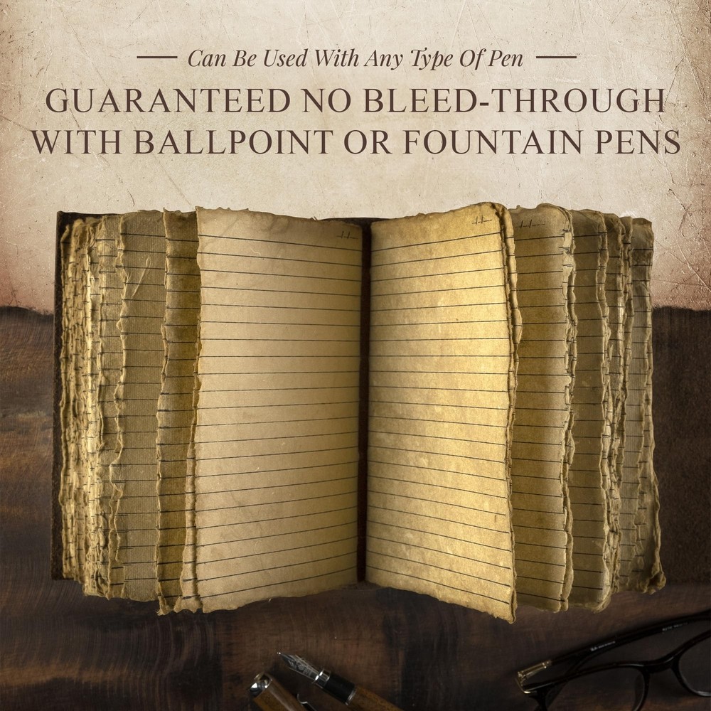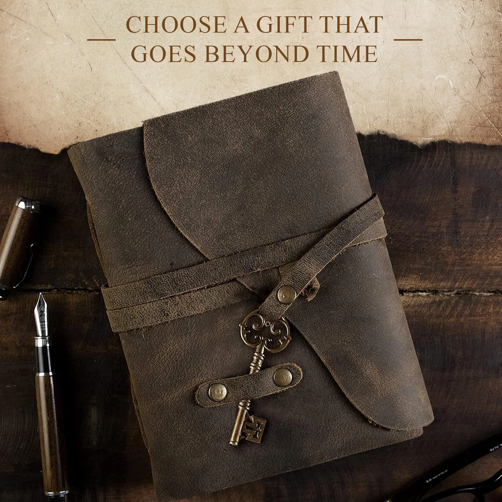 Vintage Leather Journal Lined Pages with Key - Antique Handmade Deckle Edge Vintage Paper Leather Bound Journal - Book of Shadows Journal - Leather Sketchbook - Drawing Journal - Great Gift Product Details Size: 11.5" x 8.25" Color: Vintage Brown Brand: NomadCraftsCo. MPN: NOMAD-LINEDC-VIN-A4 UPC: 749403303744 EAN: 0749403303744 Brand: NomadCraftsCo. Color: Vintage Brown Theme: Book Sheet Size: Large Pages: 240 Cover Material: Leather Style: rustic Ruling Type: Plain Special Feature: Lock Product Dimensions: 8.25"L x 11.5"W x 2.5"Th Manufacturer: NomadCraftsCo. Brand: NomadCraftsCo. Item Weight: 2.38 pounds Product Dimensions: 8.25 x 11.5 x 2.5 inches Item model number: NOMAD-LINEDC-VIN-A4 Color: Vintage Brown Cover Material: Leather Number of Items: 1 Size: 11.5" x 8.25" Ruling: Plain Sheet Size: Large Manufacturer Part Number: NOMAD-LINEDC-VIN-A4 Date First Available: December 5, 2020 Handmade Vintage Paper - As with all of the Nomad products, the Vintage Leather Journal with Key is handmade. Made with 240 lined pages thats handcrafted to look like an antique paper, making it look like it was pulled from the librarys history section. Use Any Kind of Pen - Dont let its antique looks deceive you from the fact that you can use all kinds of pens on this amazing vintage journal. From the standard fountain pen to a more unorthodox ball pen, you can use whatever pen you want. Stylishly Medieval - Ancient looking rustic cotton paper combined with the beauty of distressed leather, hand stitched by Artisans, creates a keepsake you will cherish forever. Makes a great gift for the men, women, and wiccans in your life! Strong & Sturdy Binding, Leather Wraparound and Key - Great quality journals always start with its binding. For the Vintage Leather Journal with Key, the binding is stitched by sturdy hands to make sure no paper comes loose. The added leather wraparound with a cute key that slips in will ensures that the papers are safe and secure. Our 365 Day Replacement Promise - We are very confident that you will fall in love with your Vintage Journal that we offer a 1-year guarantee. If you are not happy with your leather-bound writing journal for any reason, we will offer a full refund or a free replacement. No Questions asked!