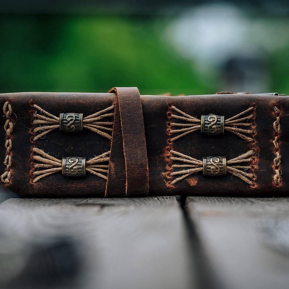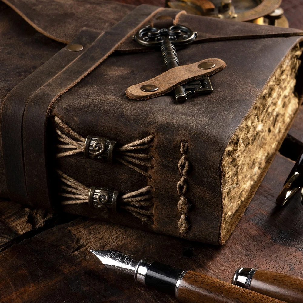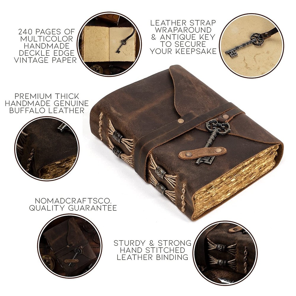 Description Features: ANTIQUE JOURNAL W/ HANDMADE VINTAGE PAPER - These old fashioned journals with ancient looking rustic cotton papers, combined with the beauty of a REAL distressed leather, are the perfect gifts for people who are into junk journal kits, diary books, & vintage items! LEATHER BOUND SKETCHBOOK PERFECT FOR ANY MEDIUM - Sketch, doodle, and write on this vintage journal with Calligraphy, Fountain, Brush, and Ball Pens, or you can even do Acrylic and Watercolors. You can also turn these old journals into your very own dungeons and dragons notebook! SUPERB CRAFTMANSHIP - These journals have 240 pages of excellent quality 150 GSM handmade vintage papers and rich, durable handcrafted genuine brown leather covers. The leather journal blank pages are 100% bleed-through proof, even with any kind of medium. STRONG, STURDY BINDING & LEATHER WRAPAROUND W/ ANTIQUE KEY - Great quality journals always start with their binding. For the NomadCraftsCo's Vintage leatherbound blank book, the bindings are stitched by sturdy hands to make sure that the papers are safe and secure. THE NOMAD'S 365-DAY REPLACEMENT ASSURANCE - We are very confident that you will fall in love with Nomad notebook, that if you are unhappy with it for any reason, reach us and we will sort things out for you. We can even get you a new oneNO QUESTIONS ASKED! Product Details: Brand: NomadCraftsCo. Color: Vintage Brown Theme: Book Sheet Size: 5 x 8 Cover Material: Leather Style: Vintage Ruling Type: Plain Special Feature: Pen Holder Number of Items: 1 Specific Uses For Product: Sketchbook, Book of Shadows, Grimoire, Poetry Journal, Food Journal, Spell Book, Memory Journal Manufacturer: NomadCraftsCo. Brand: NomadCraftsCo. Item Weight: 1.06 pounds Product Dimensions: 7 x 5 x 0.75 inches Item model number: NOMAD-ANTI-KEY-7-5 Color: Vintage Brown Cover Material: Leather Material Type: leather Number of Items: 1 Size: 7" x 5" Ruling: Plain Sheet Size: 5 x 8 Manufacturer Part Number: NOMAD-ANTI-KEY-7-5 Date First Available: July 15, 2021 Handling We will ship all orders within 3 business day of payment. Delivery We Do Not Ship Outside of the Continental US. Return Policy All items qualify for returns within 30 days of receipt. Buyer is responsible for return shipping on any item that is not damaged. Feedback We take our reputation seriously, we buy and sell online, so we understand the value of trust. If you are unsatisfied with your order, please contact us and we will work with you to resolve it to your satisfaction.