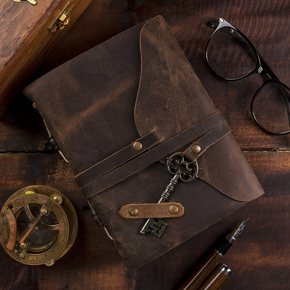 Menu Other Items Feedbacks About Us Contact Us Add To Favorites Vintage Leather Journal for Men & Women, 240 Pages of Handmade Deckle Edge Paper with Antique Key Old Looking Diary, Grimoire Journal, Book of Shadows Journal, Sketchbooks for Drawing, Mixed Media ANTIQUE JOURNAL W/ HANDMADE VINTAGE PAPER - These old fashioned journals with ancient looking rustic cotton papers, combined with the beauty of a REAL distressed leather, are the perfect gifts for people who are into junk journal kits, diary books, & vintage items! LEATHER BOUND SKETCHBOOK PERFECT FOR ANY MEDIUM - Sketch, doodle, and write on this vintage journal with Calligraphy, Fountain, Brush, and Ball Pens, or you can even do Acrylic and Watercolors. You can also turn these old journals into your very own dungeons and dragons notebook! SUPERB CRAFTMANSHIP - These journals have 240 pages of excellent quality 150 GSM handmade vintage papers and rich, durable handcrafted genuine brown leather covers. The leather journal blank pages are 100% bleed-through proof, even with any kind of medium. STRONG, STURDY BINDING & LEATHER WRAPAROUND W/ ANTIQUE KEY - Great quality journals always start with their binding. For the NomadCraftsCo's Vintage leatherbound blank book, the bindings are stitched by sturdy hands to make sure that the papers are safe and secure. THE NOMAD'S 365-DAY ASSURANCE - We are very confident that you will fall in love with Nomad notebook, that if you are unhappy with it for any reason, reach us and we will sort things out for you. We can even get you a new one–NO QUESTIONS ASKED! Product Description ANTIQUE JOURNAL W/ HANDMADE VINTAGE PAPER These old fashioned journals with ancient looking rustic cotton papers, combined with the beauty of a REAL distressed leather, are the perfect gifts for people who are into junk journal kits, diary books, & vintage items! SUPERB CRAFTMANSHIP These journals have 240 pages of excellent quality 150 GSM handmade vintage papers and rich, durable handcrafted genuine brown leather covers. The leather journal blank pages are 100% bleed-through proof, even with any kind of medium. STRONG, STURDY BINDING & LEATHER WRAPAROUND W/ ANTIQUE KEY Great quality journals always start with their binding. For the NomadCraftsCo's Vintage leatherbound blank book, the bindings are stitched by sturdy hands to make sure that the papers are safe and secure. LEATHER BOUND SKETCHBOOK PERFECT FOR ANY MEDIUM Sketch, doodle, and write on this vintage journal with Calligraphy, Fountain, Brush, and Ball Pens, or you can even do Acrylic and Watercolors. You can also turn these old journals into your very own dungeons and dragons notebook! ANTIQUE JOURNAL W/ HANDMADE VINTAGE PAPER SUPERB CRAFTMANSHIP STRONG, STURDY BINDING & LEATHER WRAPAROUND W/ ANTIQUE KEY LEATHER BOUND SKETCHBOOK PERFECT FOR ANY MEDIUM ANTIQUE JOURNAL W/ HANDMADE VINTAGE PAPER These old fashioned journals with ancient looking rustic cotton papers, combined with the beauty of a REAL distressed leather, are the perfect gifts for people who are into junk journal kits, diary books, & vintage items! SUPERB CRAFTMANSHIP These journals have 240 pages of excellent quality 150 GSM handmade vintage papers and rich, durable handcrafted genuine brown leather covers. The leather journal blank pages are 100% bleed-through proof, even with any kind of medium. STRONG, STURDY BINDING & LEATHER WRAPAROUND W/ ANTIQUE KEY Great quality journals always start with their binding. For the NomadCraftsCo's Vintage leatherbound blank book, the bindings are stitched by sturdy hands to make sure that the papers are safe and secure. Item Specification Sheet Size 5 x 8 Number of Items 1 Paper Size 5 x 8 Color Vintage Brown Cover Material Leather Binding Unknown Binding Style Vintage Specific Uses For Product Sketchbook, Book of Shadows, Grimoire, Poetry Journal, Food Journal, Spell Book, Memory Journal Theme Book Ruling Type Plain Special Feature Pen Holder Style Name Vintage Size 7" x 5" Dimensions Shipping Returns Additional Info Product Dimensions: 6.34 inches x 7.68 inches x 2.4 inches. Weight: 1.06 lb Fast shipping is very important for us. Our standard shipping service is FREE. Your order will be shipped within 1-3 business days upon full payment received. Most items are delivered within 3-5 business days, however, please allow 3-10 business days. We are shipping only to USA. We only ship to the confirmed Paypal address. We reserve the right to cancel any order for any reason at any time. We are not responsible for undeliverable addresses. We offer a 30 day return policy from checkout winning date. Your satisfaction is guaranteed! If for any reason you are unhappy with your item, just return it within 30 days for a full refund, minus shipping cost. Please contact us prior to initiating a return so that we can issue you a refund authorization. Items defective upon receipt must be packaged in their retail packaging as if new and returned with a detailed description of the problem. Return shipping fees are not refundable. We reserve the right to decline any returns if the above guidelines are not followed. All of our items, unless otherwise stated, will only run on 120 volts. Please check to make sure your country complies with these specifications. If you have a problem or question regarding your transaction please contact us before leaving any type of feedback. We will work with you to resolve any problem you may have.