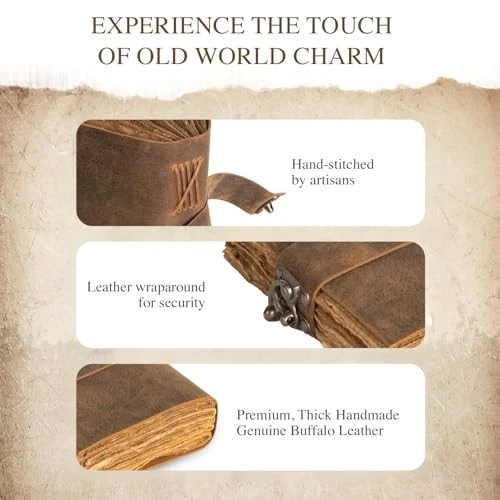 This vintage leather journal is absolutely stunning! The genuine buffalo leather feels luxurious and ages beautifully, giving it a timeless charm. The perfect size for writing, sketching, or scrapbooking, and the included gift box makes it ideal for presents. Fast delivery and a trusted seller—highly recommend for anyone who loves classic, elegant journals!